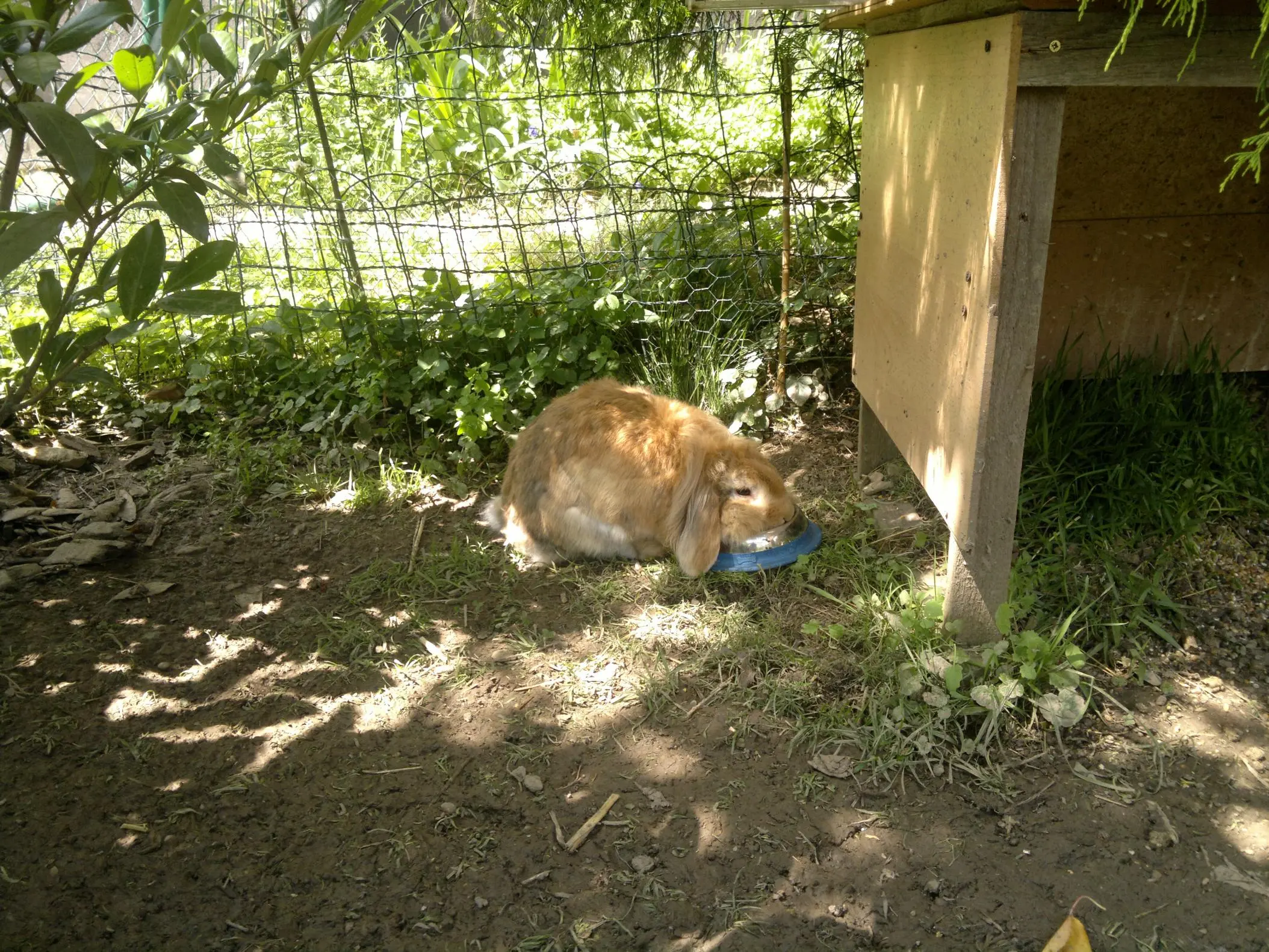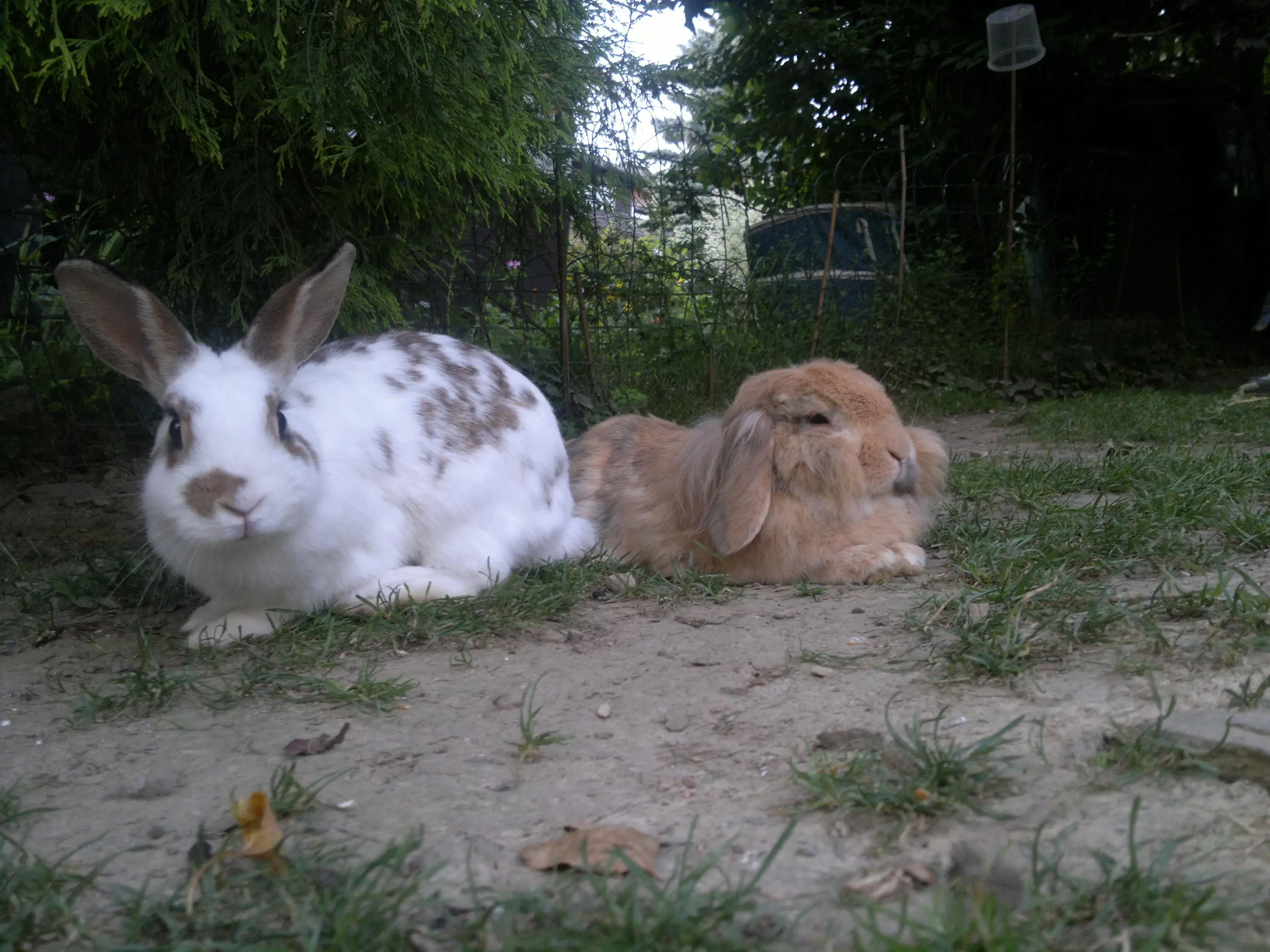 Als ich mich umgedreht habe, stand er dann da mit einem der Kaninchen auf dem Arm. Und was soll ich Euch sagen ? Scheiß auf Äste auf dem Boden, ewiges Hinterherrräumen und Verschwendung von Hasendraht. Einen solchen Mann, der das alles mitmacht, UND dabei noch lieb und nett bleibt, obwohl er NIE Haustiere haben wollte, den muß man erst mal finden.