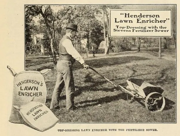 In HENDERSON’s Everything fort the lawn and golf course 1904 war es der STEVENS FERTILIZER SOWER, der das Problem meistern sollte.