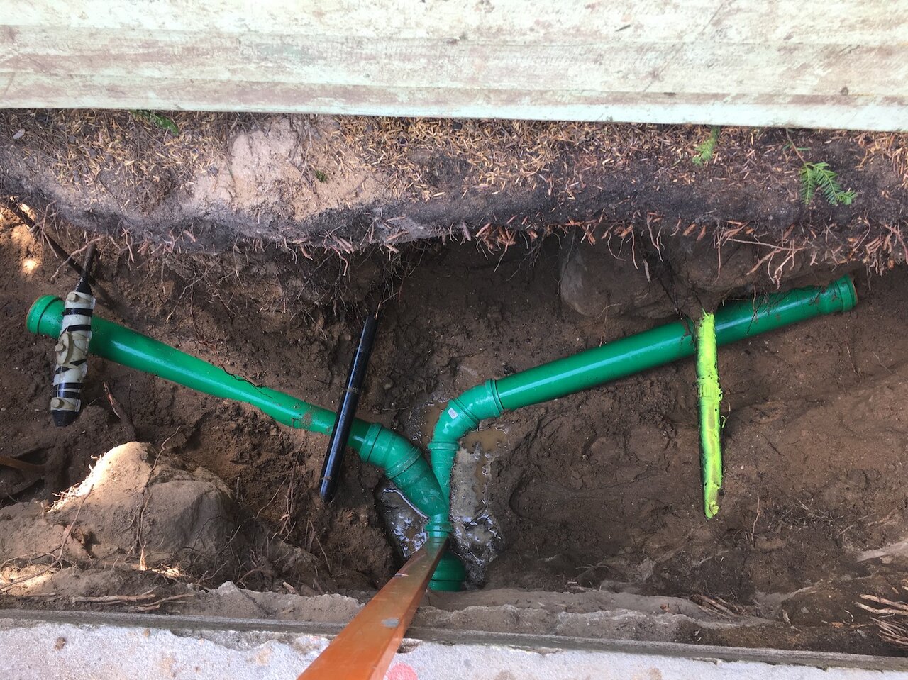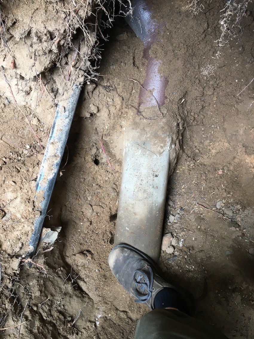 Anschliesend neue Rohre bis zu den Regenfallrohren an den Hausecken und zum Hauptkanal (Straße).