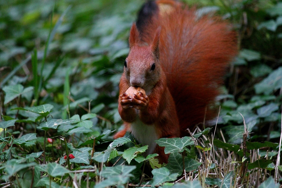 Wundert mich aber auch nicht das auf dem Gelände Eichhörnchen gibt, da dort einige Haselnussträucher stehen, der Garten recht groß ist und nebenan eine kleine Gartenanlage steht, wo aber eben auch nicht alles blitzeblank ist.