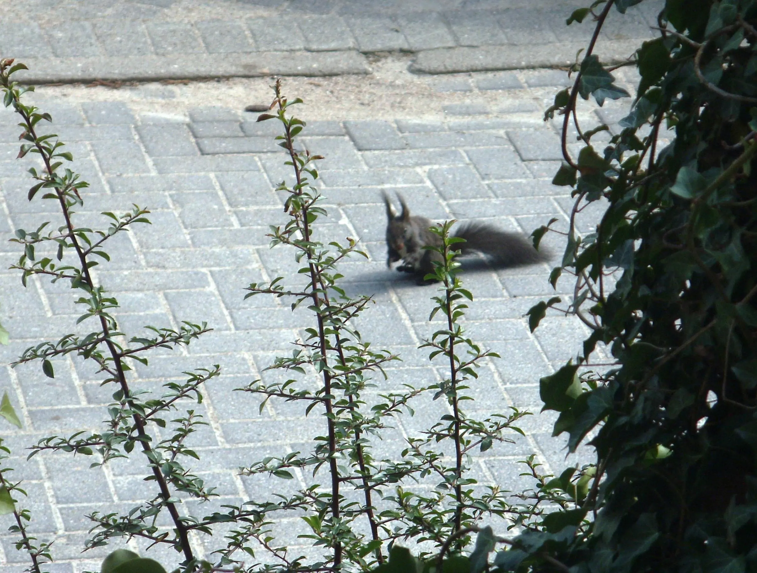 Am Montag lief mir bei meinem mittäglichen Rundgang plötzlich ein Hörnchen aus einer Einfahrt direkt vor die Füße. Ich habe mich total erschrocken, das Hörnchen aber auch, hat 'ne Vollbremsung gemacht :D