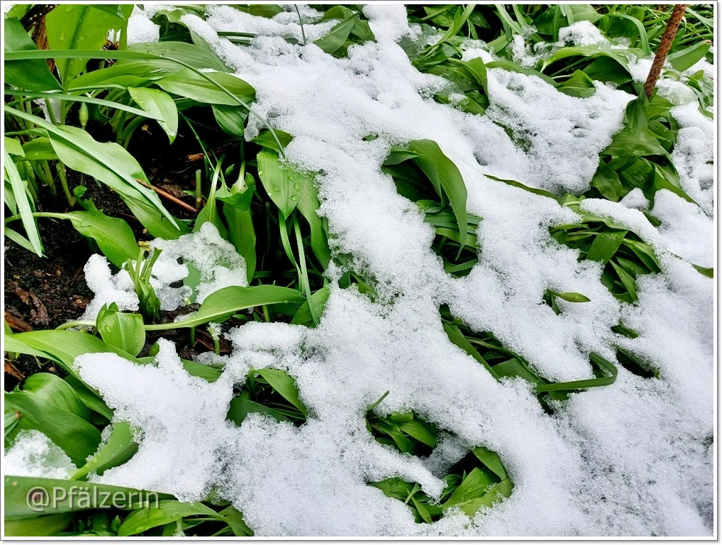 Dem Bärlauch kann ich beim Wachsen zuschauen. Vor drei Tagen waren nur kleine Spitzen zu sehen, heute sind es schon ganze Blätter, die gewachsen sind.