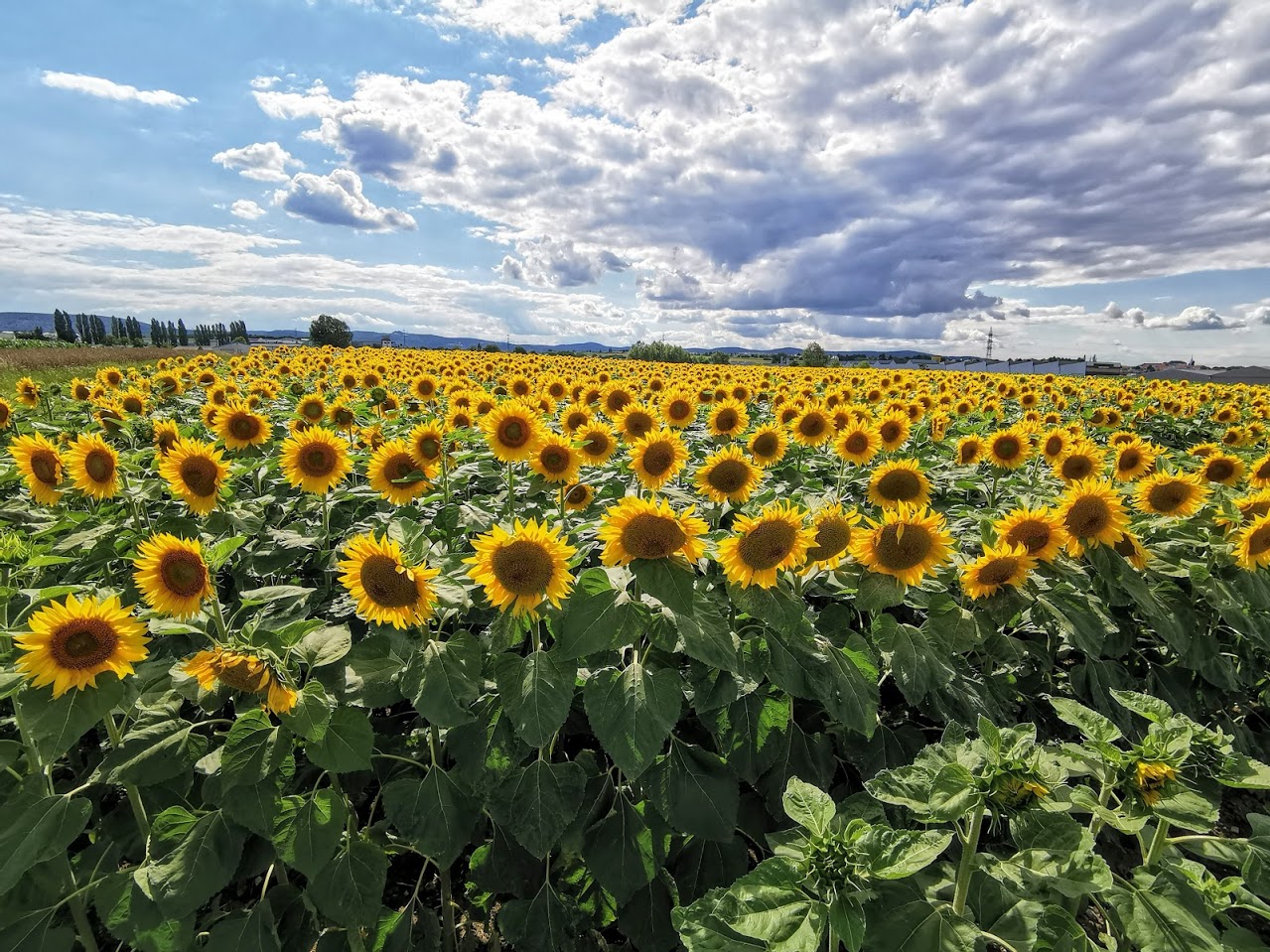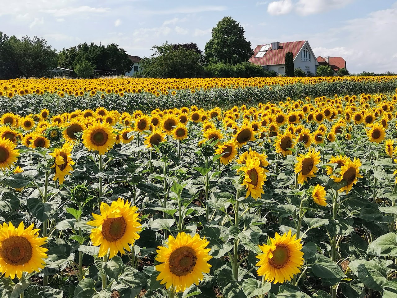 Monokultur ist in jedem Fall schlecht , ob bei Sonnenblumen oder Mais oder anderem, egal wie schön es auch aussiehtMöchte euch ein bisschen Sonne mitbringen - unsere Stadt ist umringt von Sonnenblumenfeldern - am Feld wird schon Getreide gedroschen- die Fotos sind von den zwei letzten Tagen....