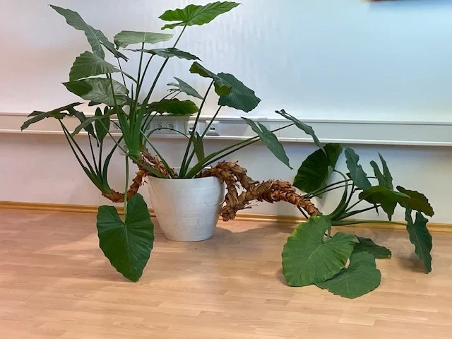 Wir haben im Büro einen großes Elefantenohr stehen, die jetzt leider schon am Boden weiter wächst.