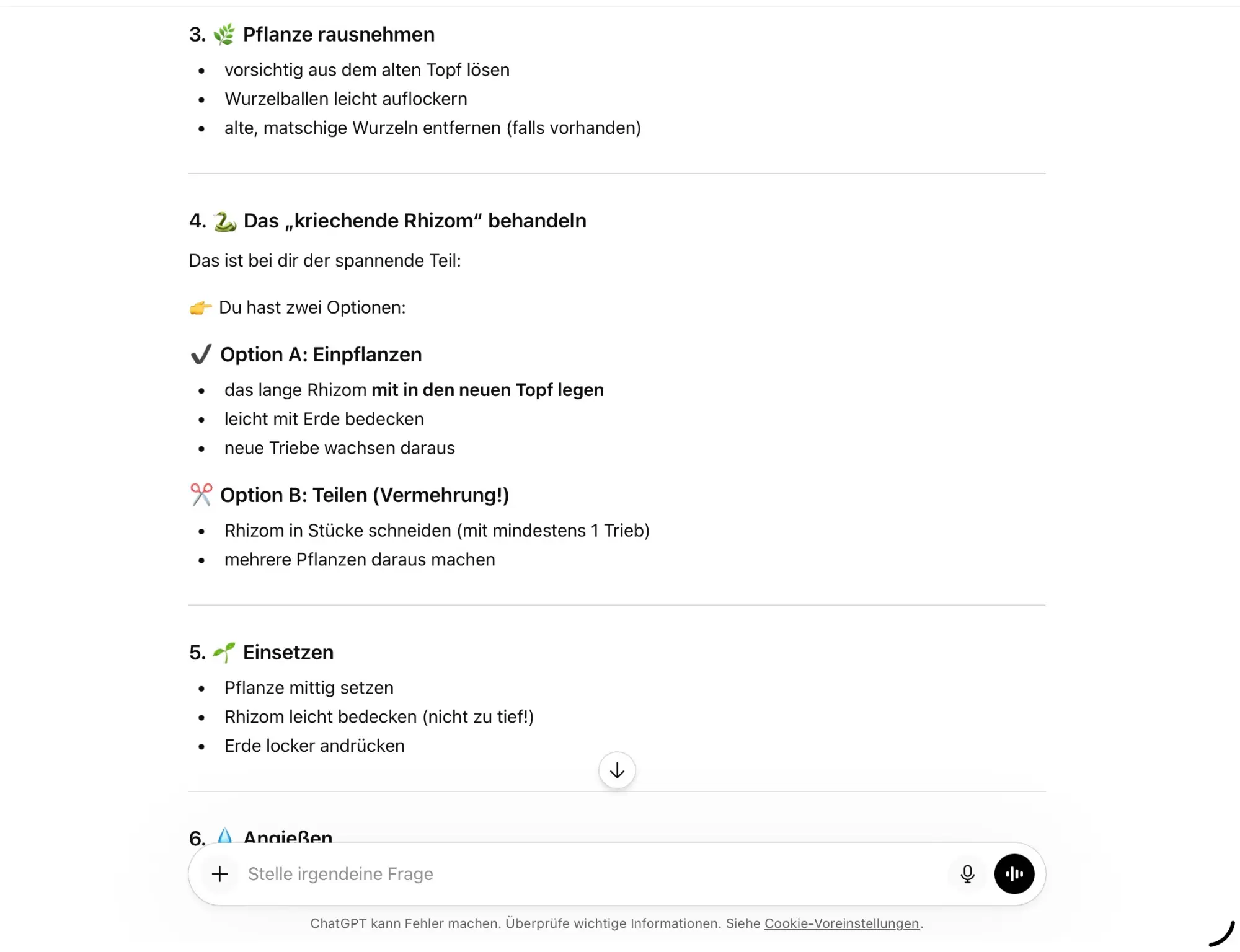 So wie ich das verstehe sind also die „Stämme“ nichts anderes als das Rhizom selber. Und wie ChatGPT vorschlägt, abschneiden und das Rhizom vergraben. Du kannst das Elefantenohr also gut vermehren.