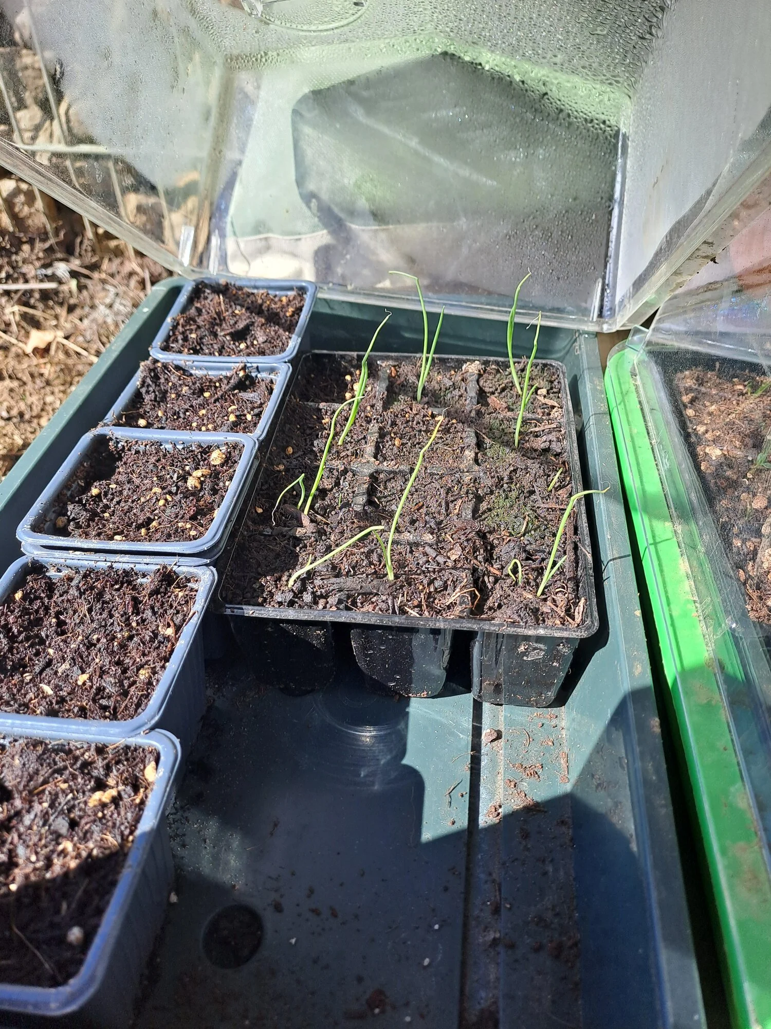 Also das das von der Erde kommt kann ich mir nicht vorstellen, das ist zum einen die gleiche in der meine Paprikas und Tomaten wachsen und zum anderen eine Gemüseerde in der draußen in der Pergula der Salat in Quickpottplatten wächst und da ist nirgends irgendwo was grün.