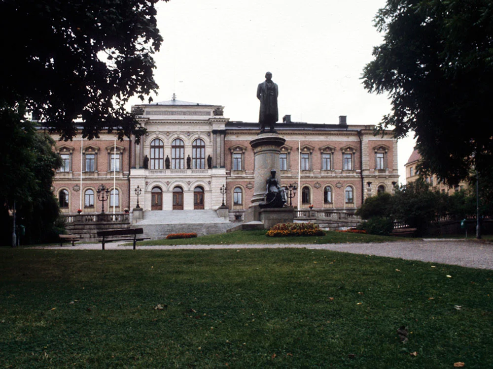 Wir machten Halt in der Nähe von Uppsala - es regnete gerade nicht - und erschraken über lauten Krach in der Luft .. fuhren kurz mal in die Stadt zu Universität und Dom, ich erinnere mich, dass ich die Stadt nicht mochte, vielleicht war ich auch einfach müde. In Stockholm blieben wir einen Tag, auf dem Weg vom Campingplatz zur T-Bana-Station hüpften eine Menge kleiner Frösche herum, wir sahen die Vasa in ihrer Behelfsunterkunft und dann verliefen wir uns, irrten auf Skepsholmen herum .. .. bei der Weiterfahrt erreichten wir den berühmten Runenstein „Röksten“ und für das Foto kam kurz die Sonne hervor.