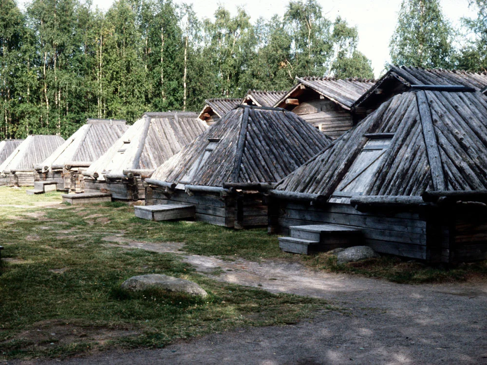 Wir sahen Zorns Gammelgard, die Hütten, in denen die Samen übernachteten, wenn sie zur Kirche in Arvidsjaur kamen, das Samenmuseum .. am Campingplatz in Jokkmokk wunderte ich mich über das Schwimmbecken, ich habe allerdings niemanden schwimmen sehen, es war wenig los am Platz und so warm war es mittlerweile auch nicht mehr. In der Gegend war kaum noch Verkehr, auf einer Straße war mittendrin ein Loch, da wuchs ein Bäumchen raus .. und dann hieß es rechtzeitig wieder nach Süden zu fahren, auf einer anderen Route natürlich, an der Küste, von der wir wenig gesehen haben. Denn es wurde recht kalt und dann begann es zu regnen, tagelang. Wenn wir in den Regenanzügen stehen blieben, lief das Wasser in den Kragen, wir brauchten eine Brücke, unter der wir ein Weilchen stehen bleiben konnten, oder eine andere Rastmöglichkeiten. An einer trafen wir auf einen Reisebus mit deutschen Urlaubern. „Es regnet?“ - war zumindest einem gar nicht aufgefallen. Ja, man ist mitten im Geschehen auf einem Motorrad .. Die Campingplätze waren dabei zu schließen, an einem war es der letzte Tag, an dem er geöffnet hatte, als wir hinkamen, und wir waren dankbar für die Möglichkeit in einer Hütte zu schlafen, das Zelt auszupacken und etwas trocknen zu lassen.