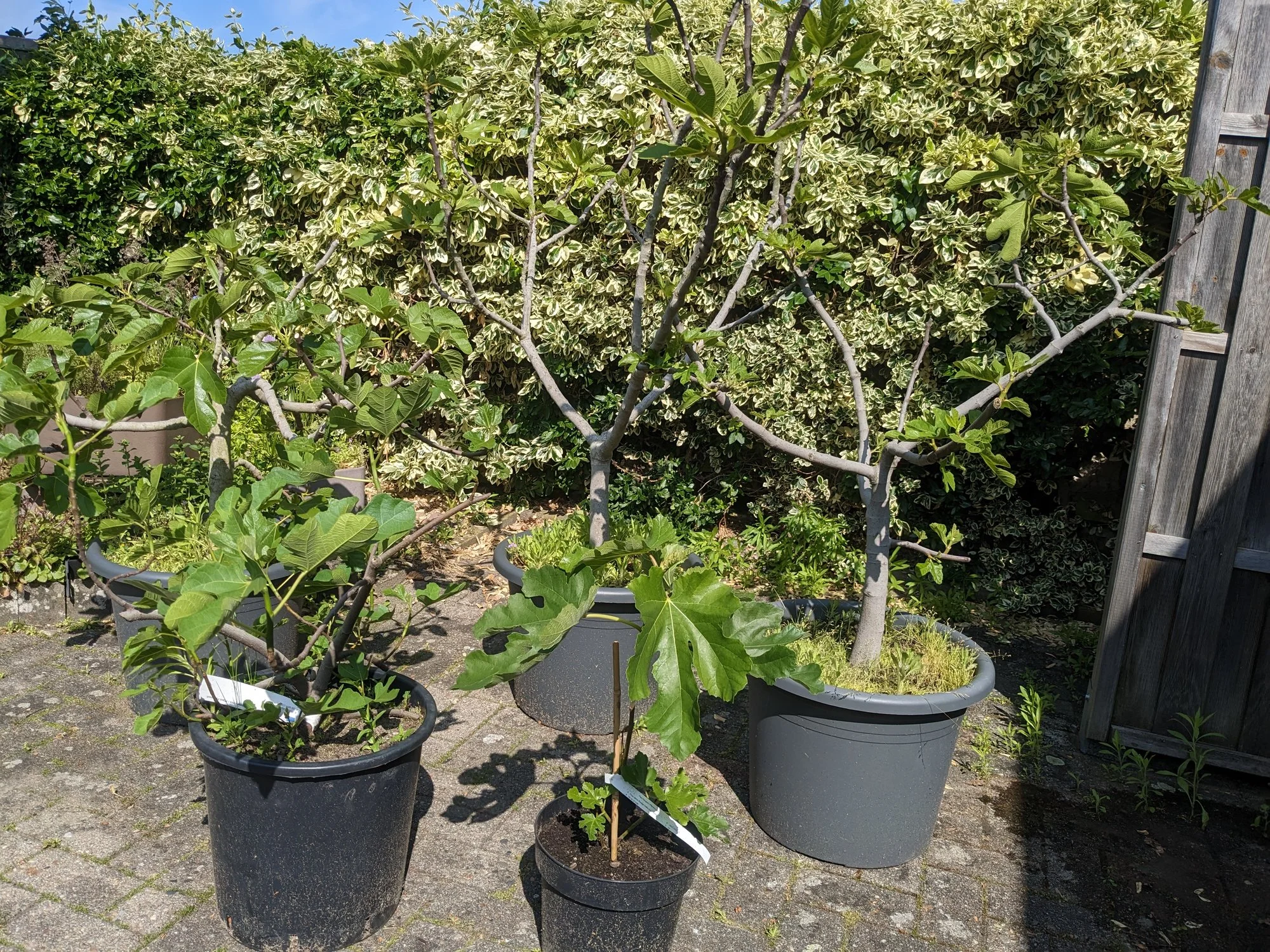 Die Feigen in den großen Töpfen solltest mal ca. 10cm/15cm oberhalb des Stammes zurück schneiden, da wachsen sonst nur so lange Triebe weiter und biegen sich mit der Zeit runter...
