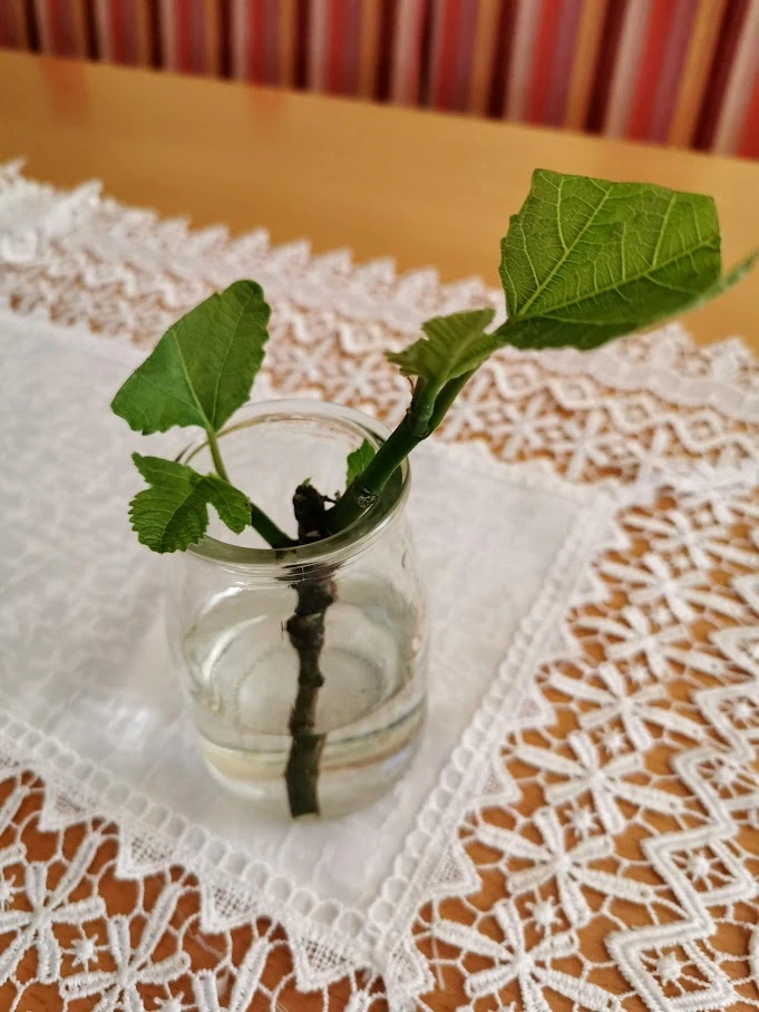 Den Steckling habe ich vor einer Woche geschnitten und steht jetzt zur Bewurzelung im Wasser-