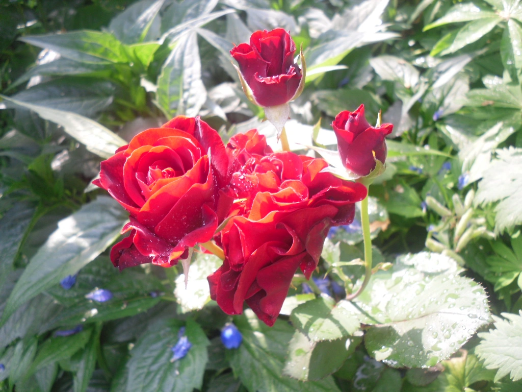 Königin der Rosen, Pariser Charme, Diamond Jubilee, Lawinia (die leider nicht klettern will) und eine kleine Topfrose aus dem Vorjahr