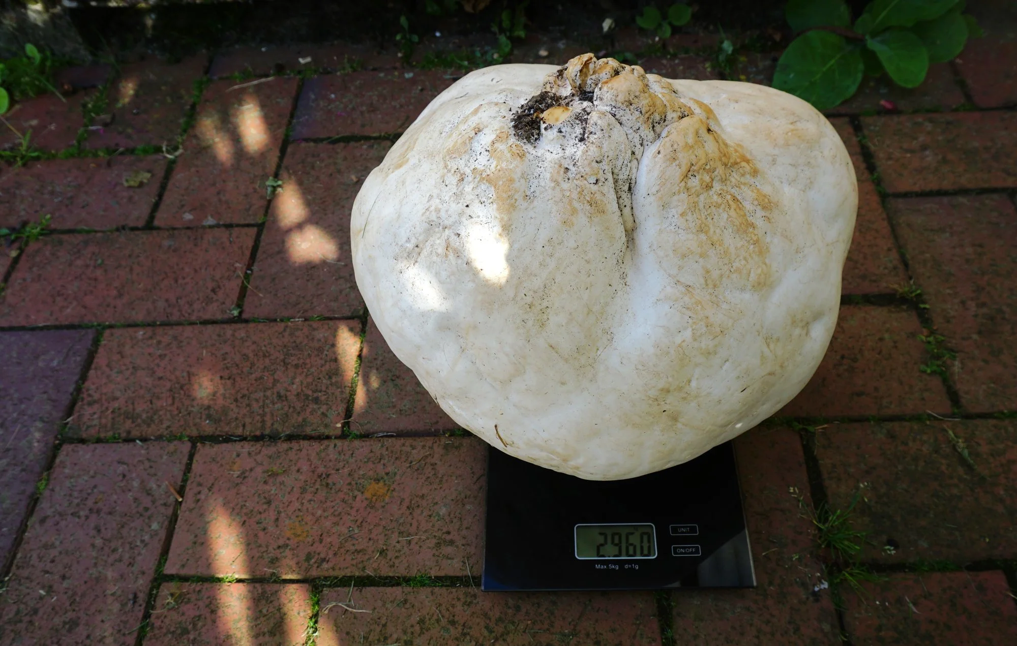 Die Jahreszeit der Boviste: (Das größte Exemplar, das ich je fand. Erdrückt fast die kleine Küchenwaage. Und ja, er wird gegessen! )