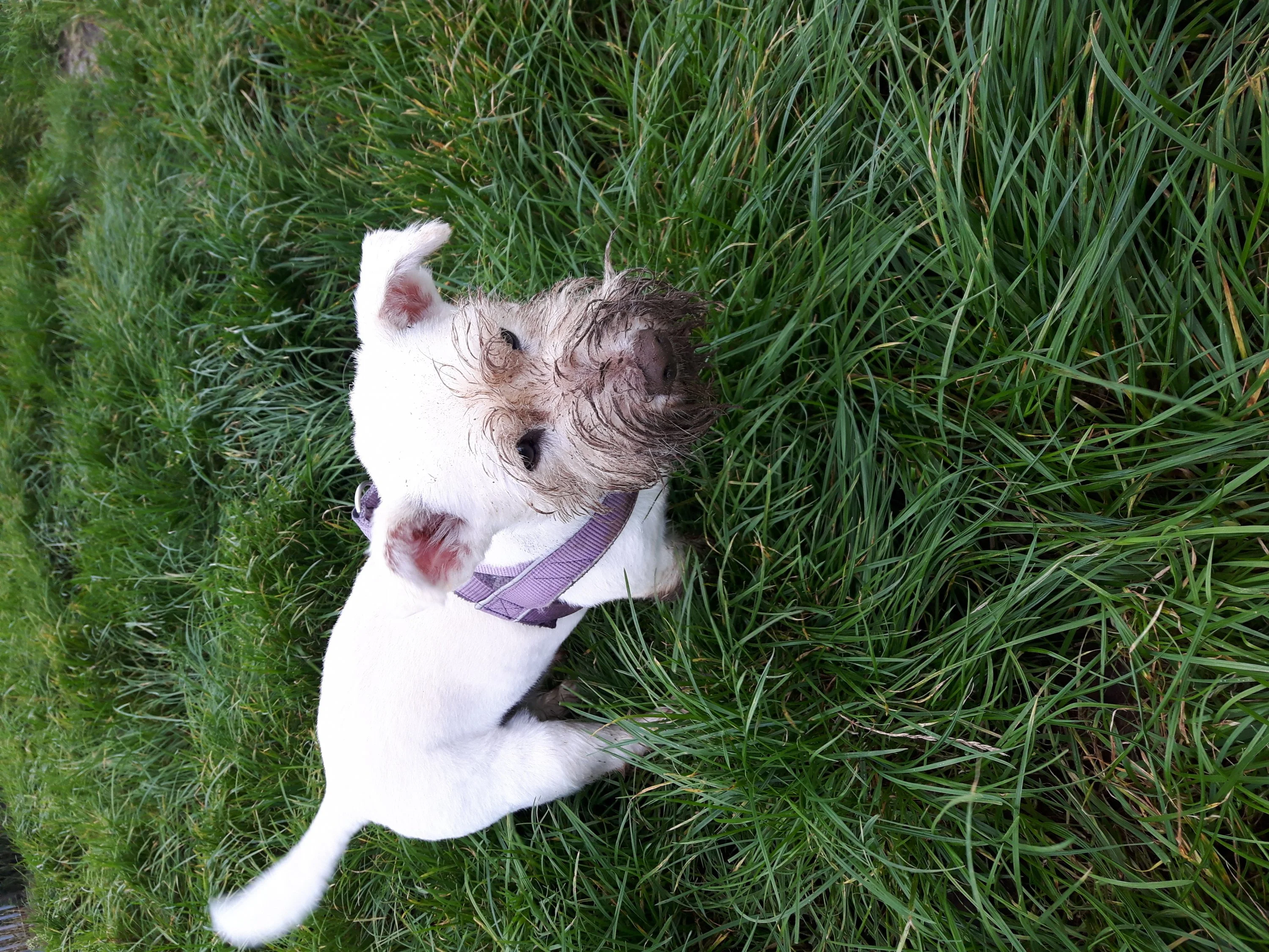 Heidi ist eingezogen. Hundi beim im Maulwurfshaufen wühlen. Eine riesen Wurzel am See. Leider hat noch keiner die Bäume zersägt und weggeräumt.