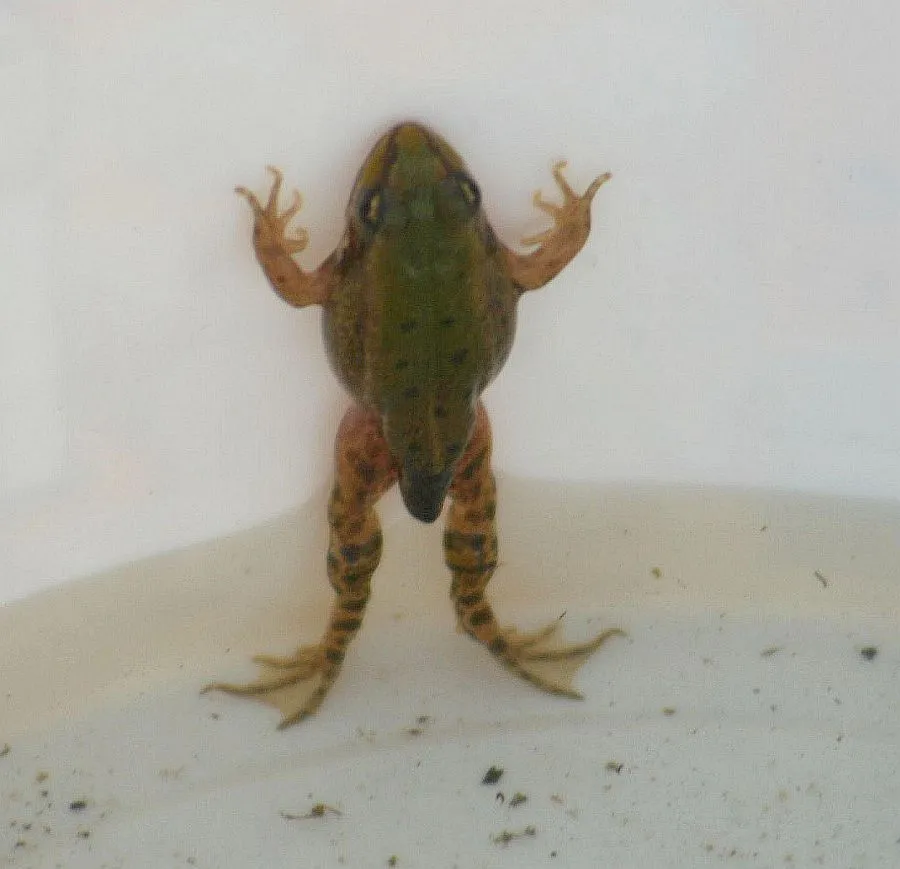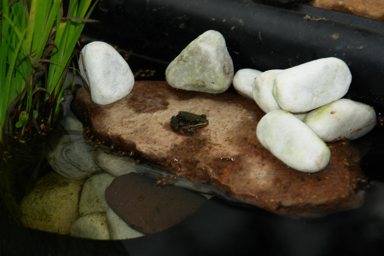 Dann immer wenn einer von uns auf die Terrasse ging, sprang irgendwas in den Teich. Nun haben wir entdeckt, dass es kleine Frösche sind. Mal sind sie zu zweit, mal sind vier zu sehen.