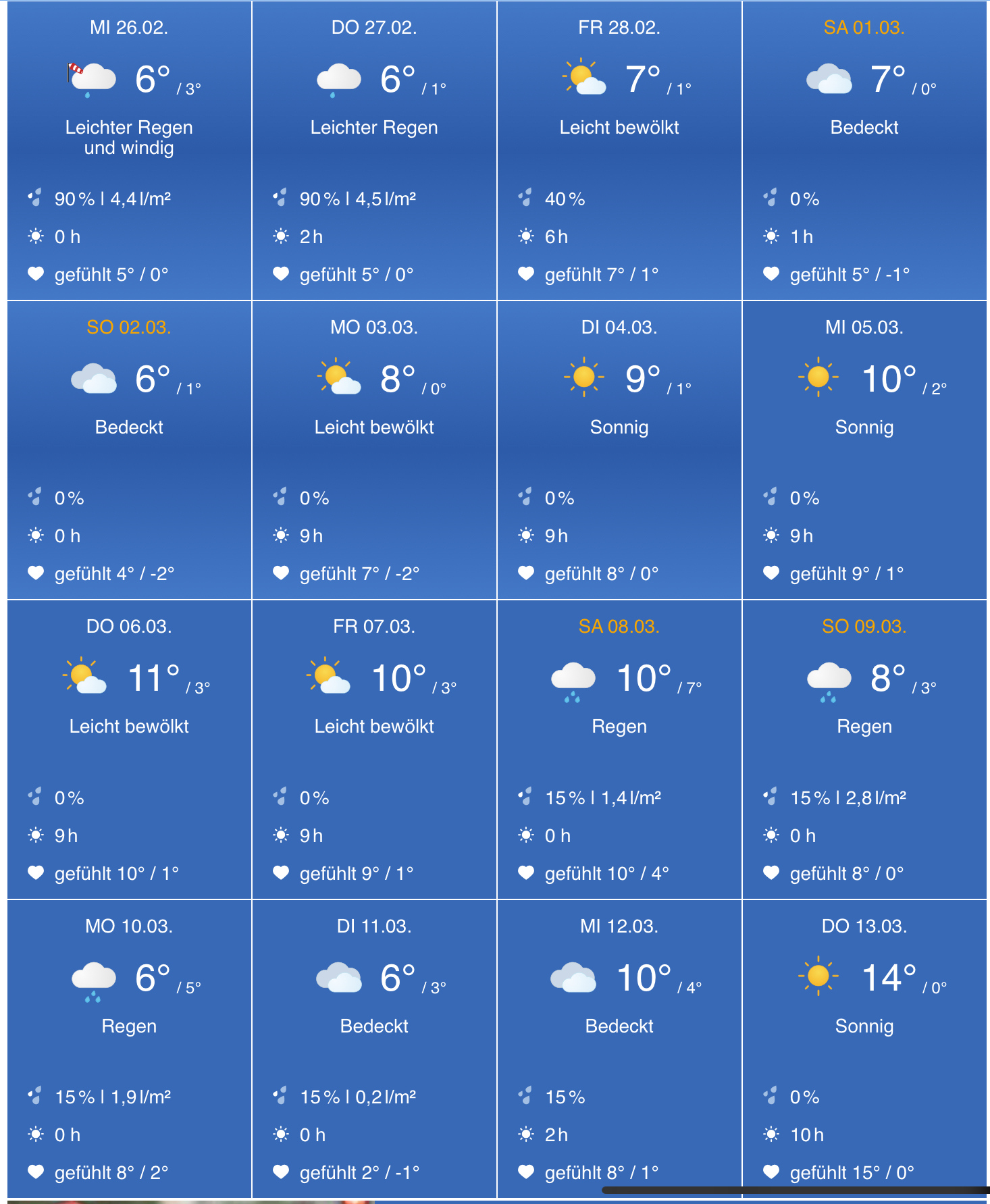 • In den nächsten Tagen müssen wir wohl wieder ein wenig mehr die Jacke fester anziehen. Es ist jedoch offenbar glücklicherweise nie richtig schnatterkalt. Und ab März dürfen wir auch wieder auf richtig warmes Wetter hoffen. :)