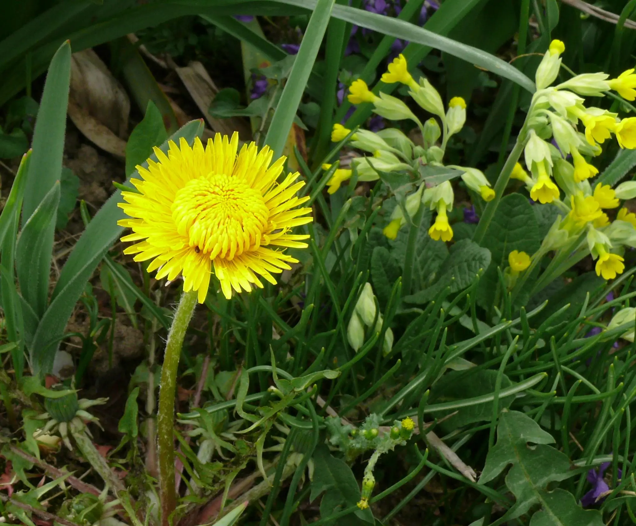 Schlüsselblumen kennt jeder, aber auf dem 3. Bild ist ein Säming zwischen den Pflastersteinen zusammen mit Löwenzahn. Auch das ist Frühlingserwachen!