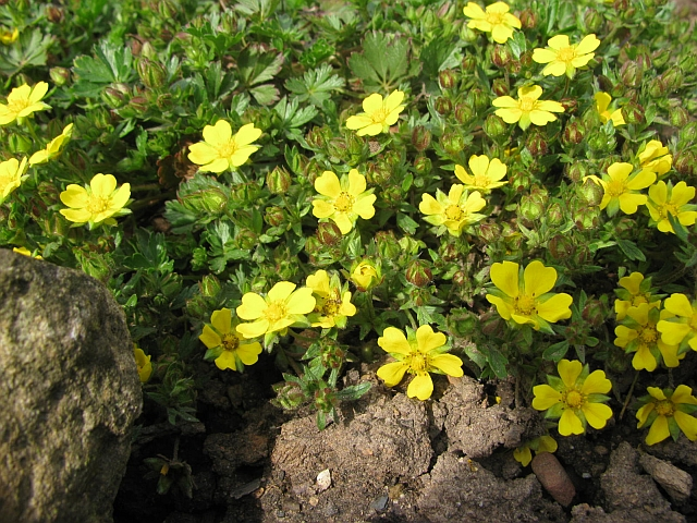 Rosen blühen noch nicht, aber Fingerkraut `Potentilla aurea`
