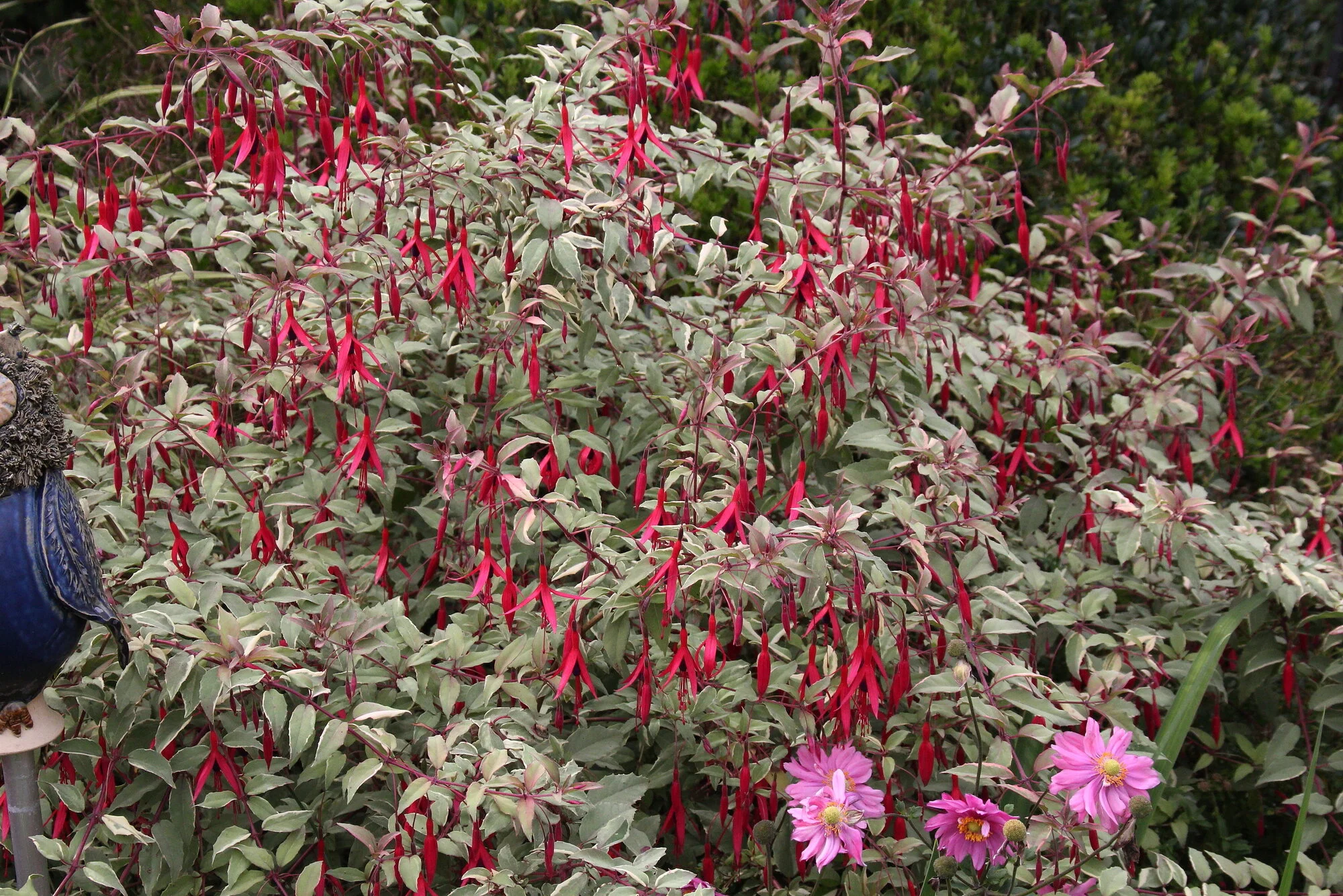 Genau diese Fuchsie wächst bei mir im Garten (gekauft bei holländischen Nachbarn), ich habe sie schon zigmal geteilt und verschenkt. Sie bleibt aber relativ klein, keine Hecke.