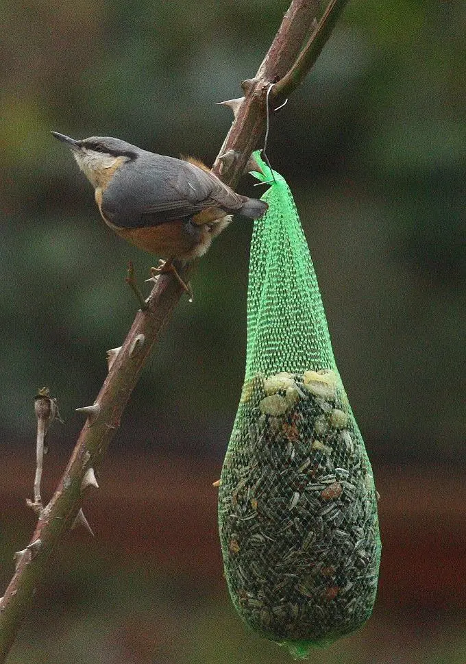 Habe jetzt noch einmal die Mixtur der von mir eingeschmolzenen Meisenknödel verändert. Dazu kamen jetzt noch mehr Nüsse und Haferflocken. Kernige und zarte Haferflocken.