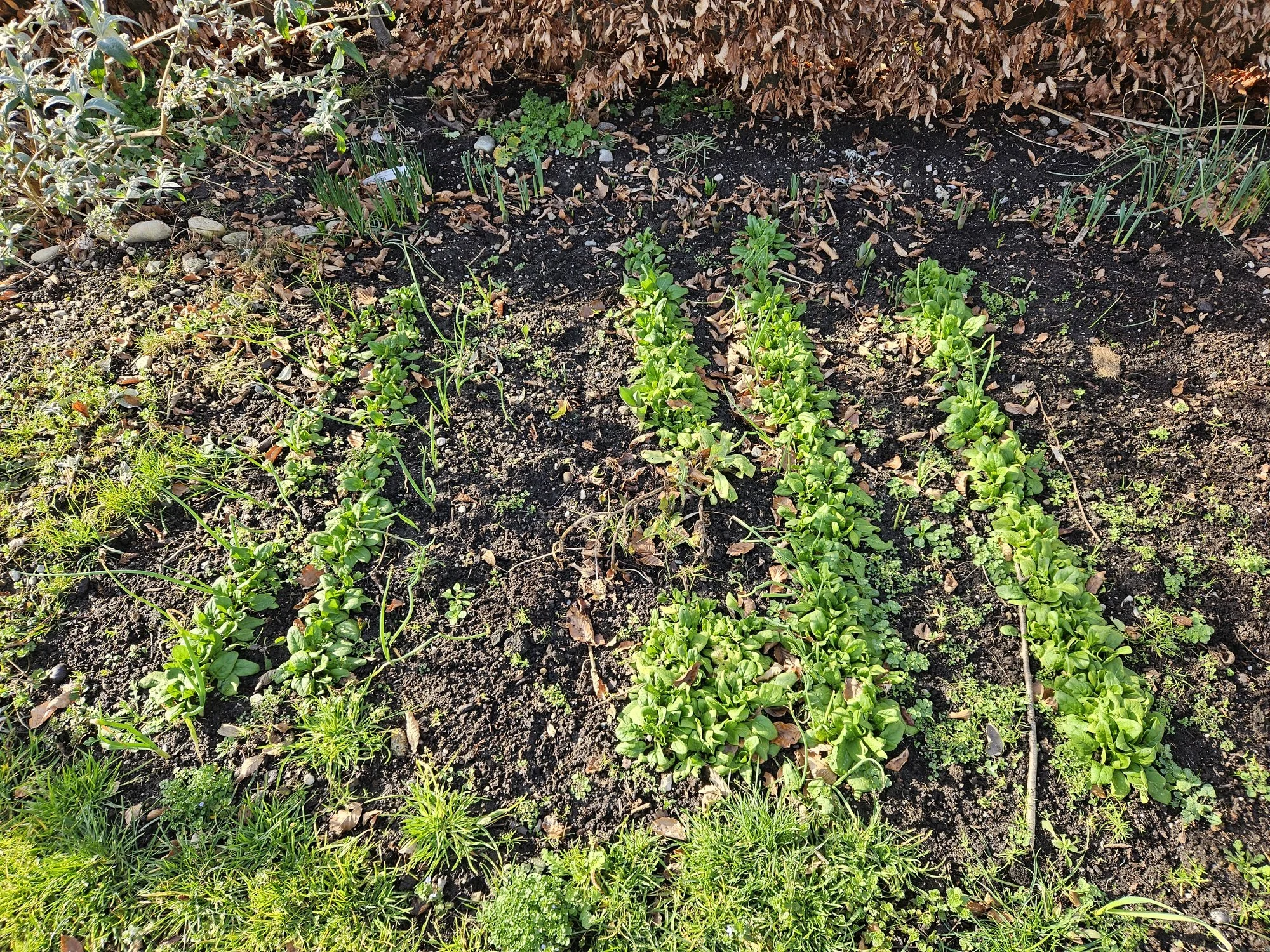 Spinat aus dem Garten ist was Feines.Ostern eigener Spinat wäre prima.