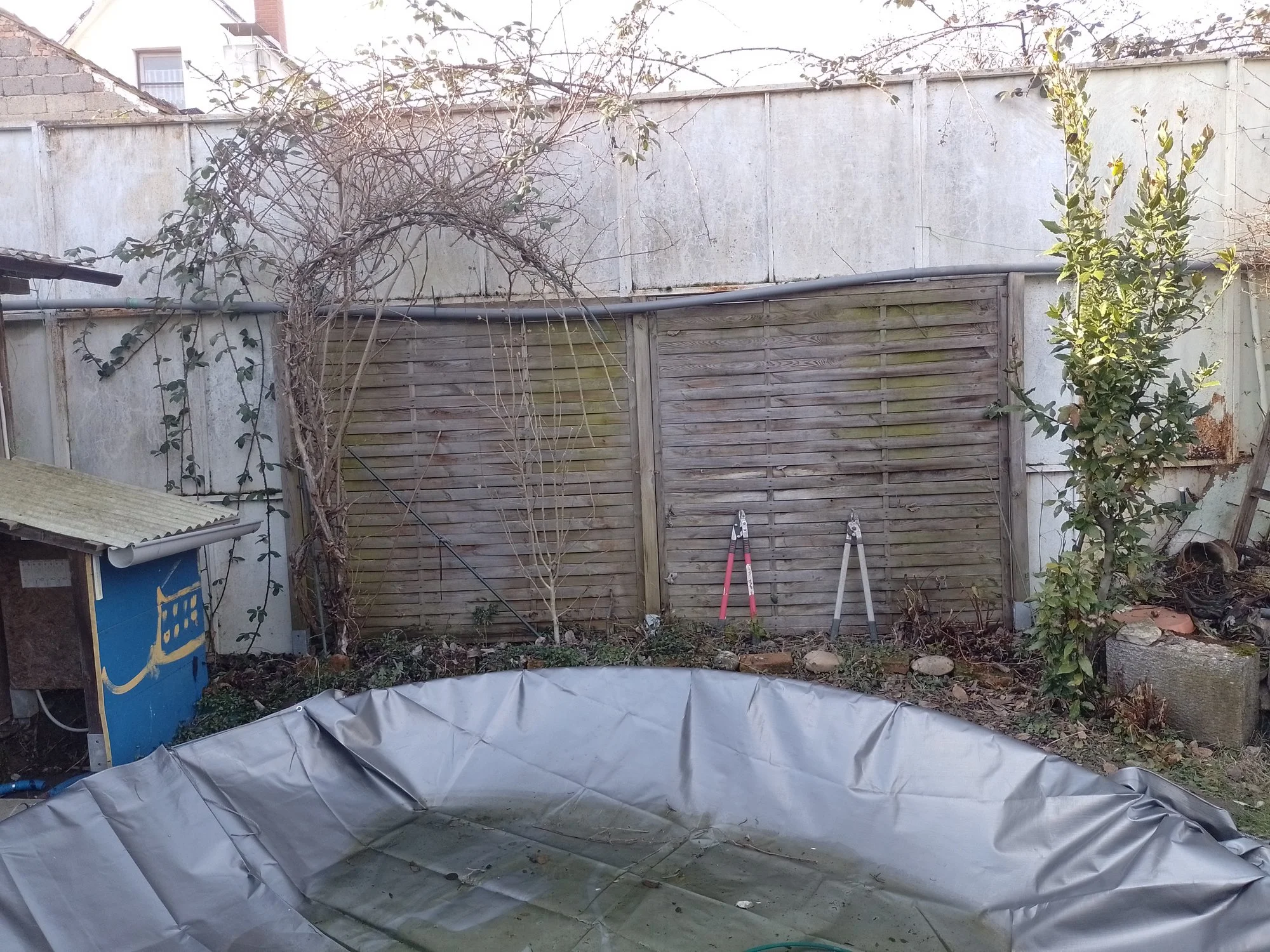 Hier ist die Hälfte schon weg und von oben vom Nachbar kamen Brombeeren rüber, da bin ich mit der Leiter hoch und hab sie weg geschnitten, es ist ein Schrotthändler die Brombeeren wachsen bei ihm durch den Schrott durchBei mir sind die Forsythien noch nicht in Vollblüte, aber es sind schon gut Blüten auf.Nachtrag: Meine Rosen-Hochstämme schneide ich noch nicht, obwohl sie kräftig austreiben.