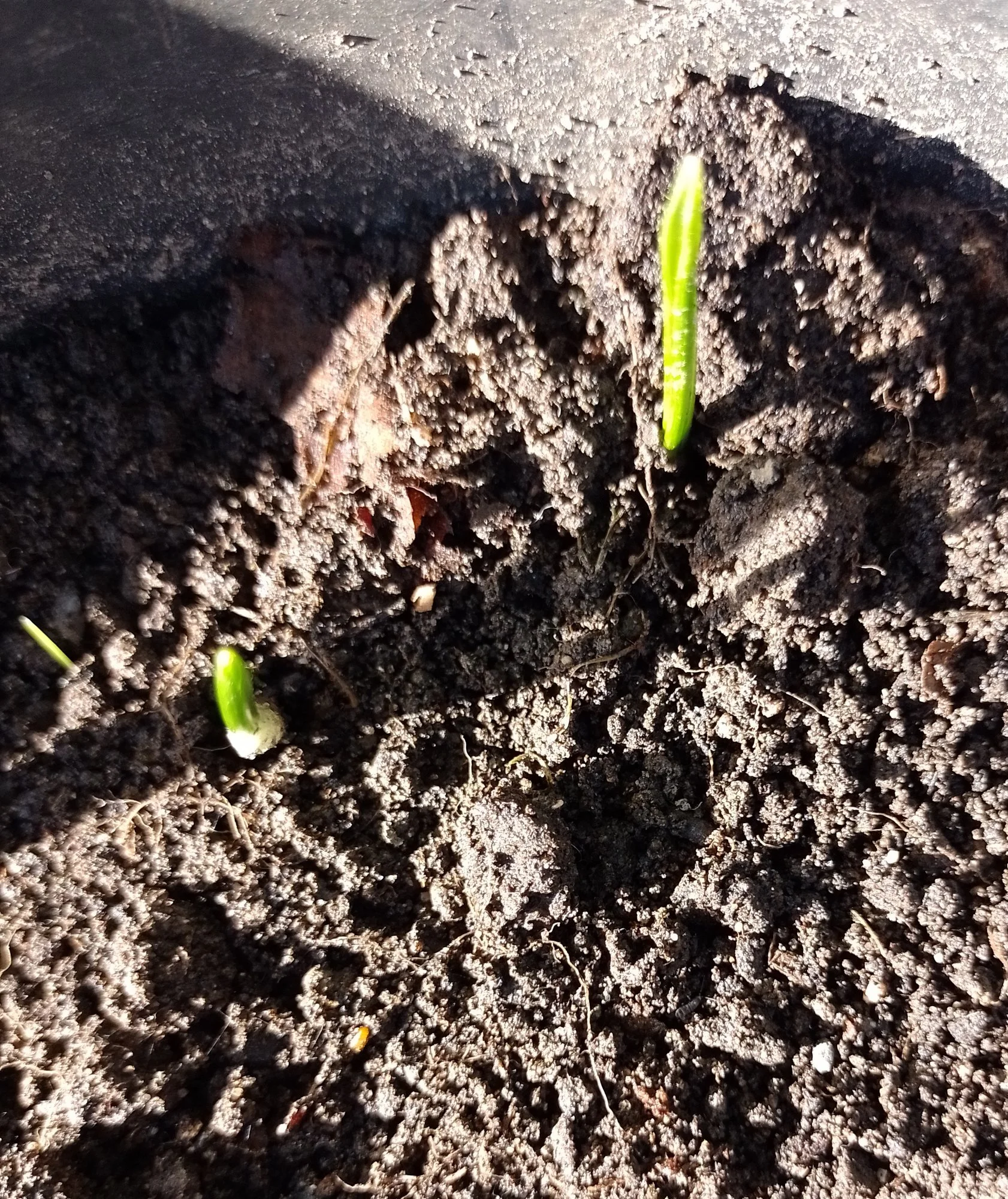 Dann habe ich den Wunderlauch abgedeckt, hatte ich ja erst gepflanzt und deswegen Blätter und Vlies drüber und was soll ich sagen, er wächst, echter schön die grünen Spitzen