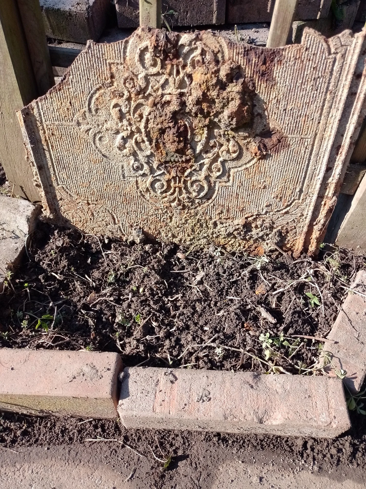 Gestern habe ich die Waldmeister Ecke sauber gemacht (am Rosenbogen unten)und vorne dran einen Holunder gepflanzt, der Waldmeister guckt schon raus und ich habe unseren Fund (muss eine alte Ofentür sein)die ich beim Walipinibau ausgegraben habe an das Rosengestell gestellt, da darf der Waldmeister dran rumklettern