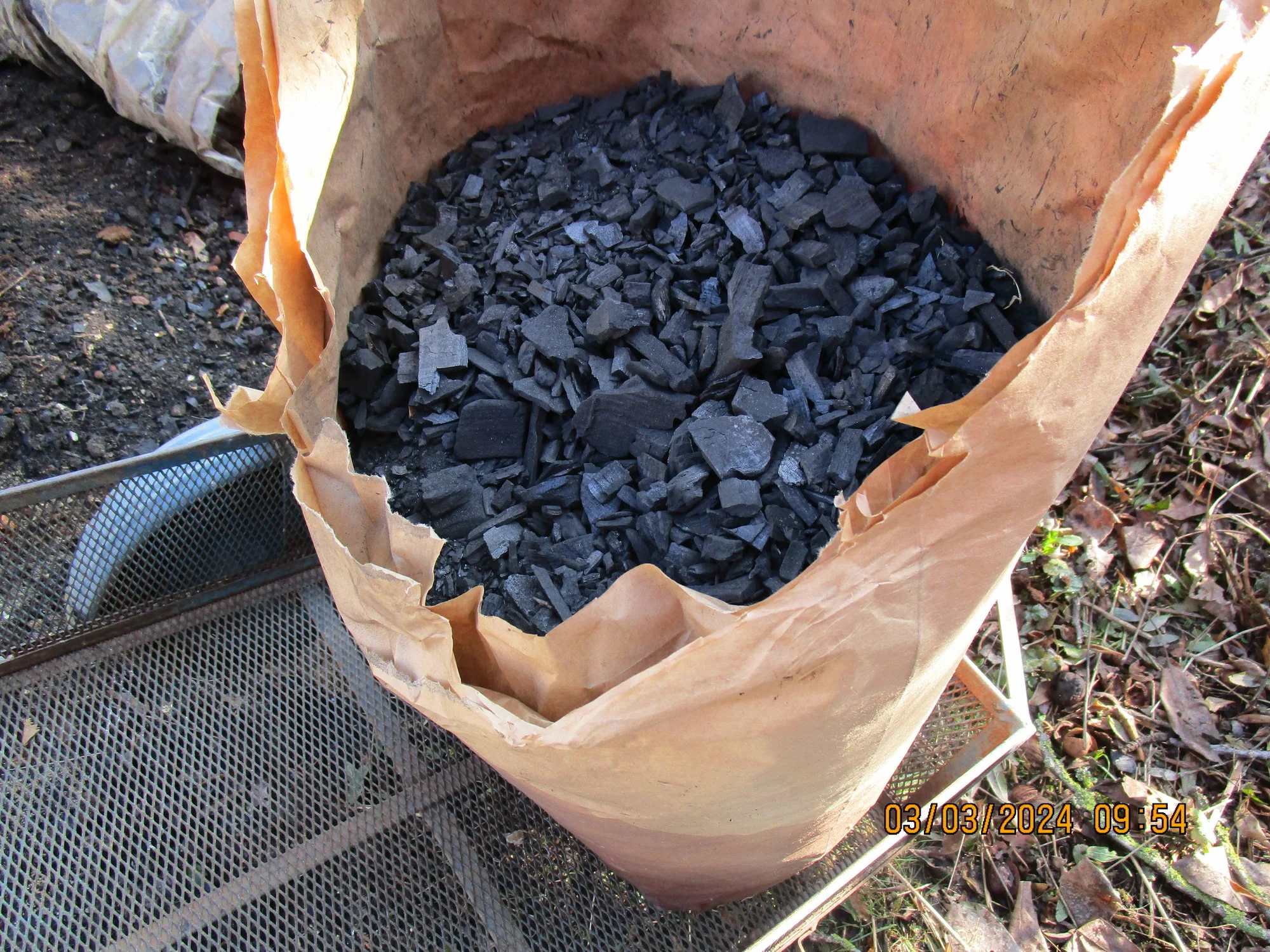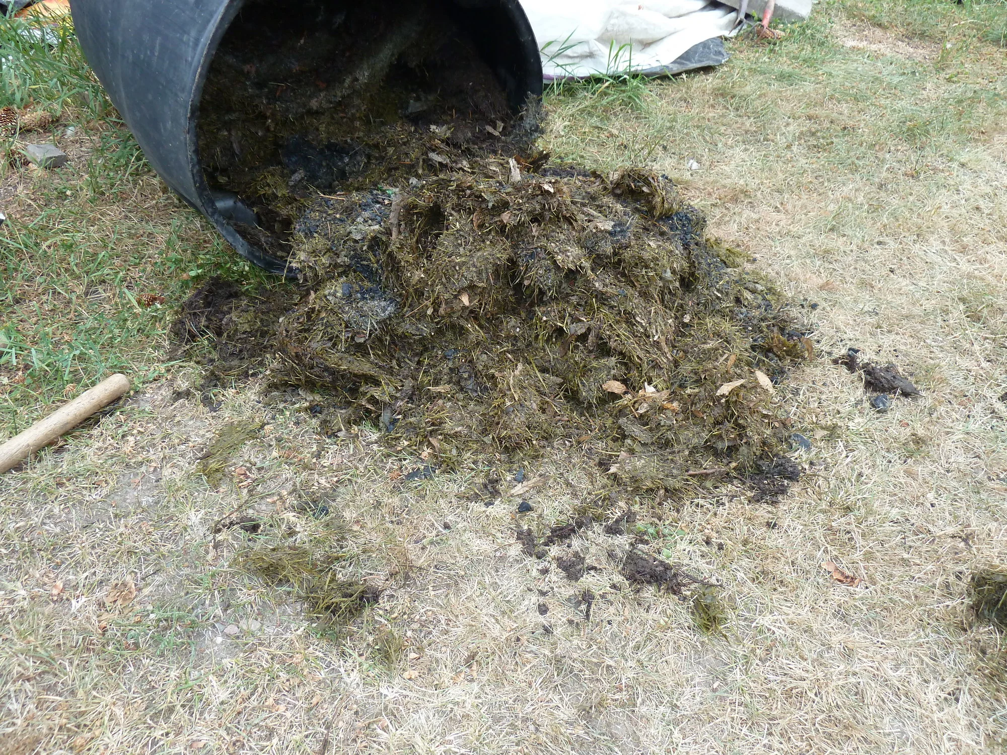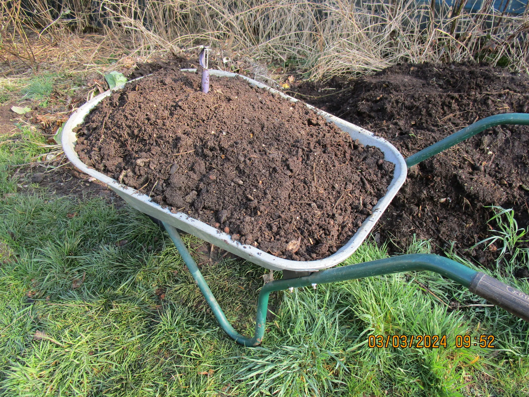 Heute wurde der abgedeckte Haufen entnommen . Unter diese Erde in der Karre ich mische ich auch gleich Holzkohlengrus aus einer Köhlerei .