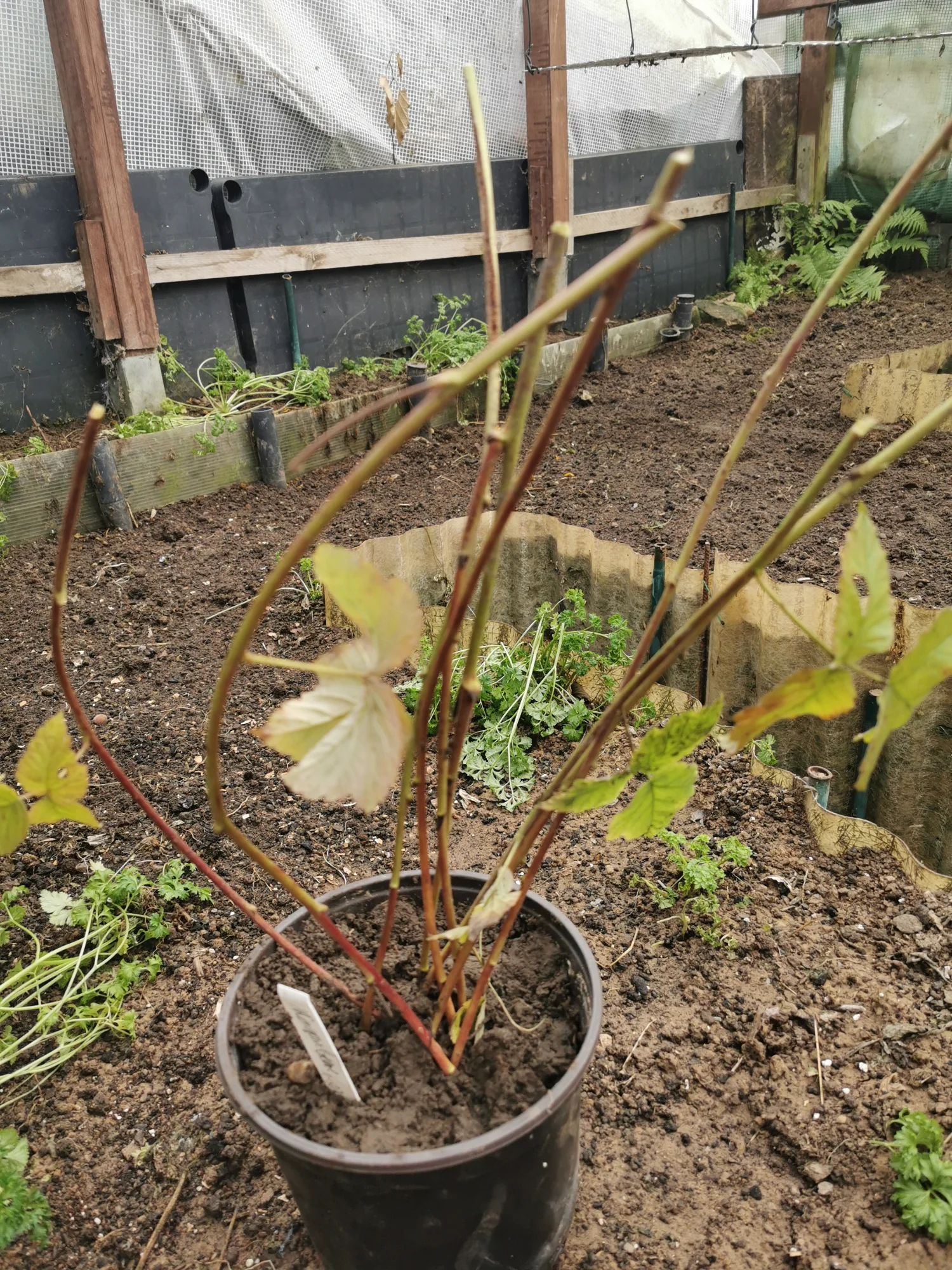 Einige hatten ihre Spitzen auf dem Boden selbst bewurzelt, die habe ich ab geschnitten, in einen Topf mit erde gesetzt und erstmal ins Walipini gestellt, die setze ich an eine Seite wo sie wuchern dürfen, von denen kann ich nicht genug bekommen, ihre Früchte sind so lecker 😋