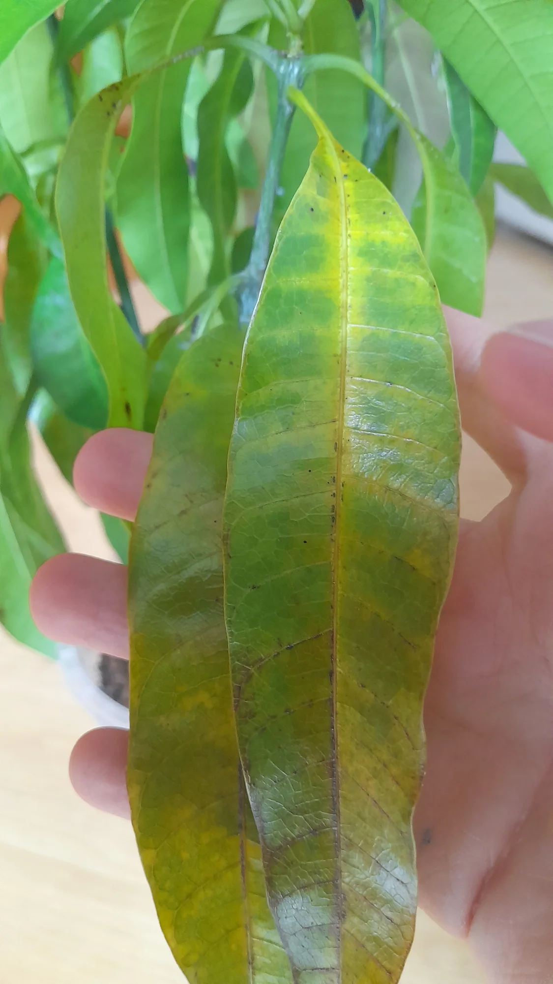 Hallo, ich hab das Problem dass meine Mango plötzlich gelbe Blätter bekommt. Dazu hat sie ziemlich viele schwarz/braune stellen. Auch habe ich dass Problem dass sie wie im Bild zusehen solche weißen punkte verteilt über viele Blätter hat. Auch entsteht ein gelbriger tau an den bättern. Ich dachte es wären Läuse und habe sie nun schon recht oft mit schädlingsbekämpfungssprays besprüht. Nützt aber offensichtlich nichts. Würde mich über eine Antwort freuen.