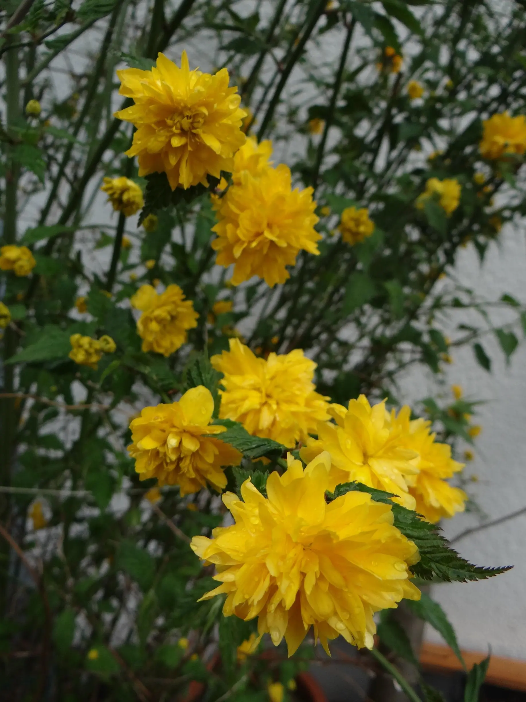 So einen riesigen, über und über gelben Ranunkelstrauch haben wir auch, die sind einfach so richtig schön fröhlich