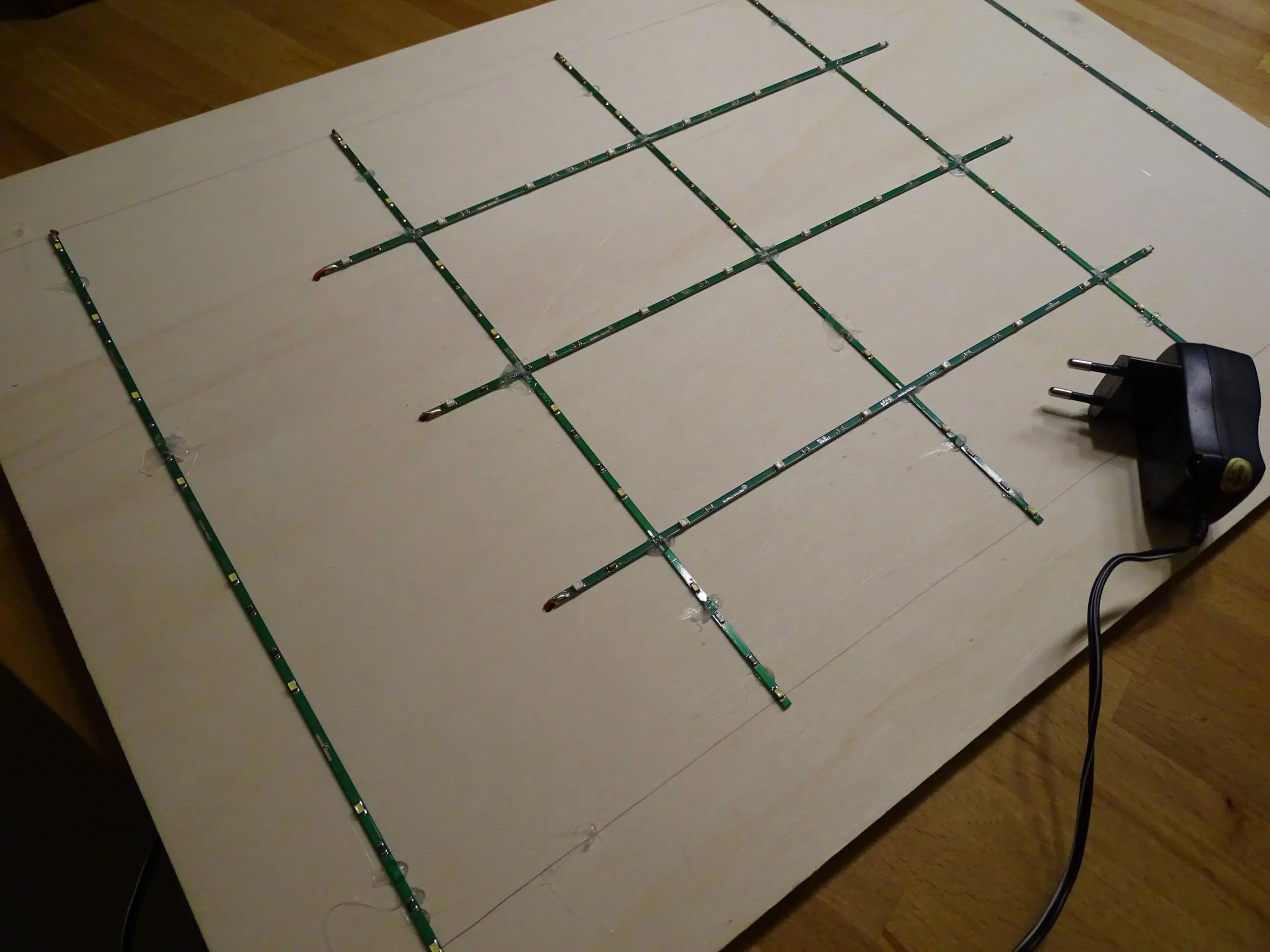 GG hat einfach LED-Streifen mit Heißkleber auf einem Holzbrett befestigt.