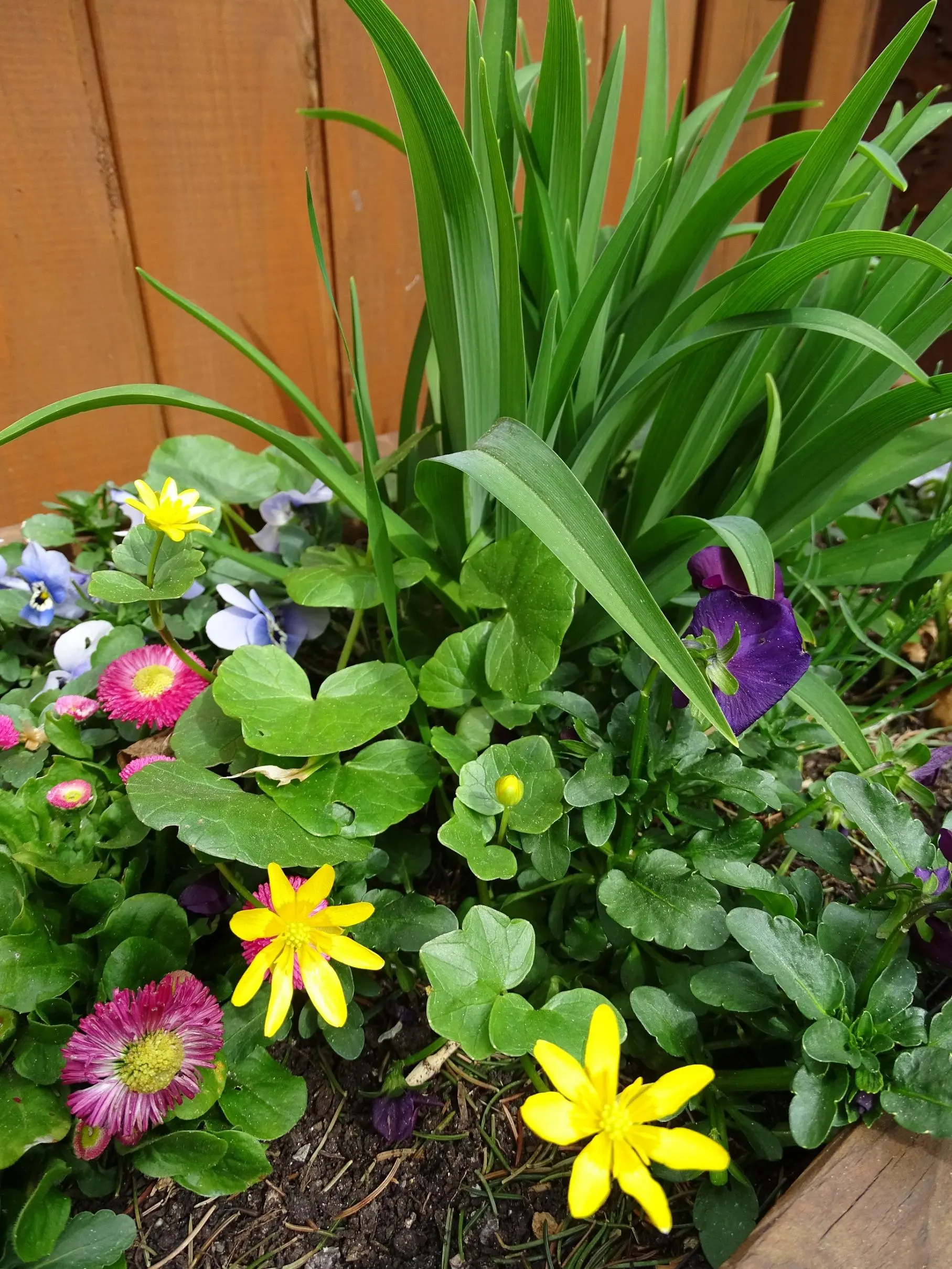 Die eine hab ich in den Holztrog gepflanzt ... kann es sein, dass da so kleine gelbe Blümchen mitgekommen sind?
