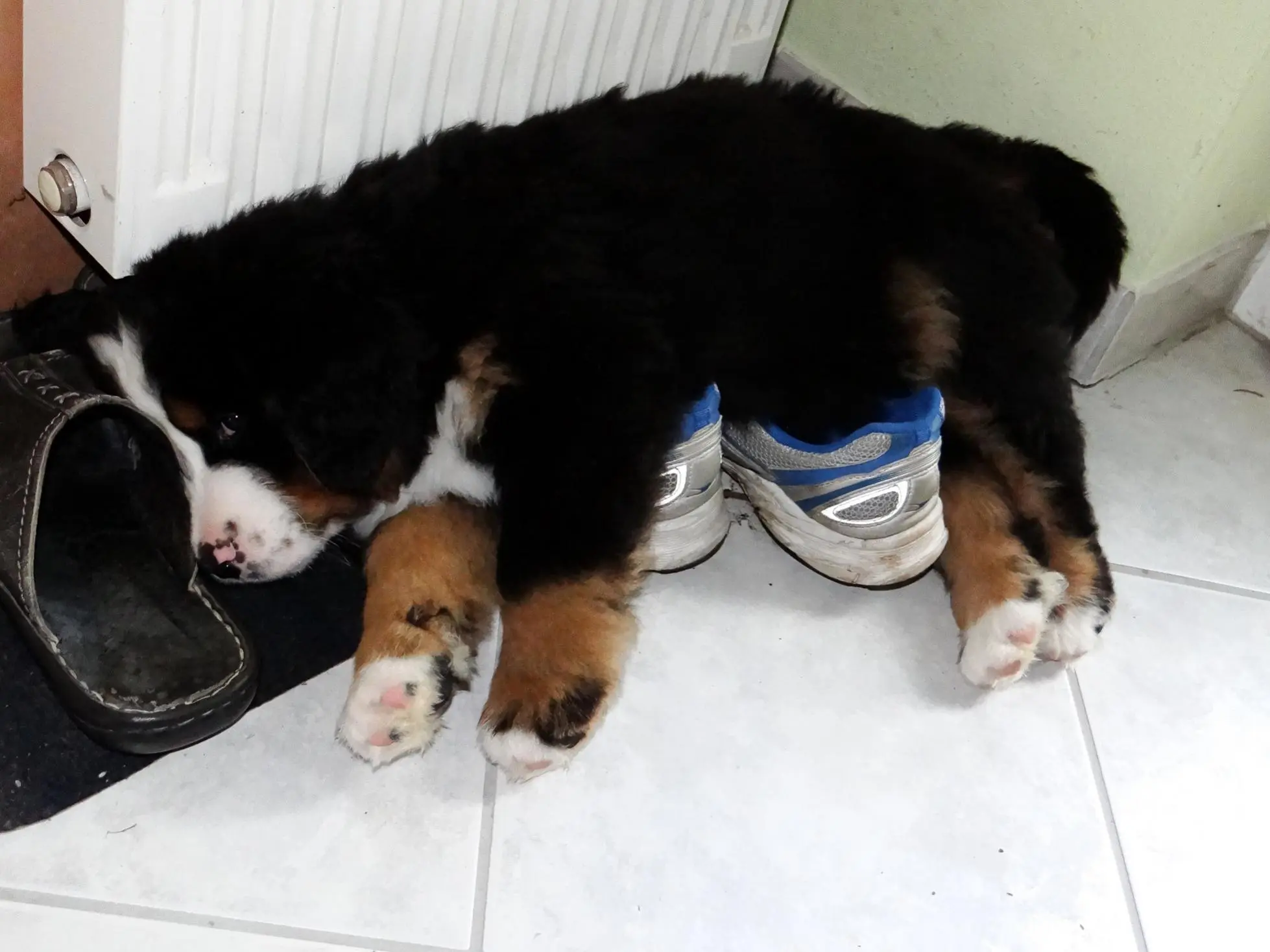 Anschließend gab's ein gemütliches Nickerchen auf Herrchens Schuhen
