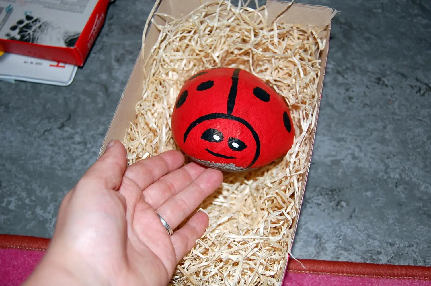Und ein Geschenk von meiner Mammi, ein Stein wird zum Marienkäfer :-)