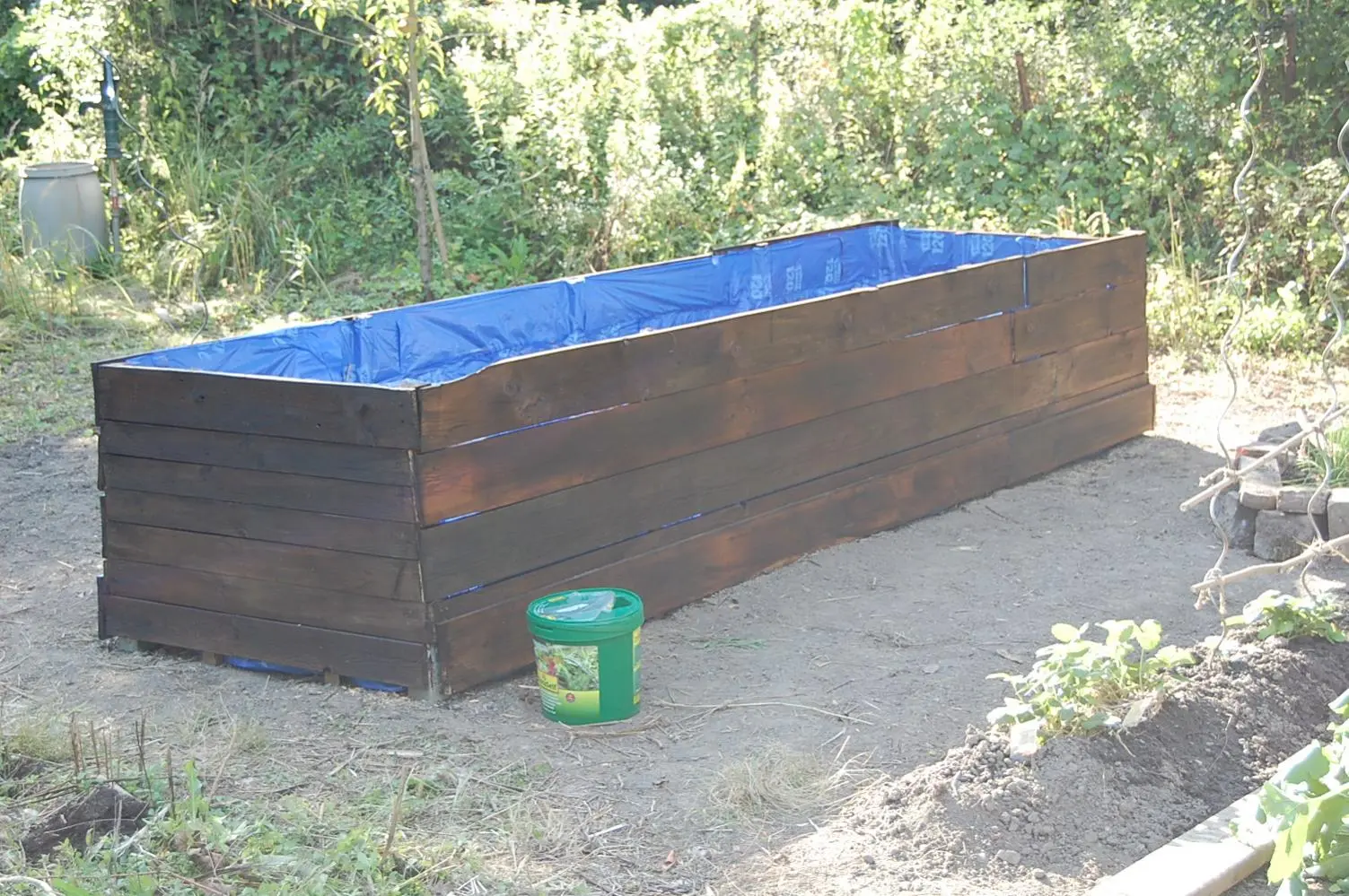 Kurz um Gehackt und Unkrautwurzel gesammelt und gerecht, Äste gehäckselt, Hochbeet lasiert und innen mit Folie Verkleidet.... usw.