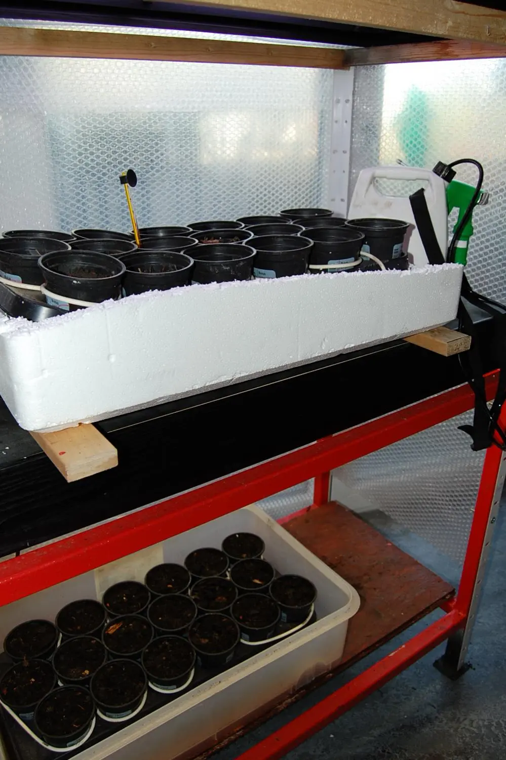 -Topftray mit 15w Heizkabel (Restwärme kommt von den Lampen) und den alten Aquarienröhren