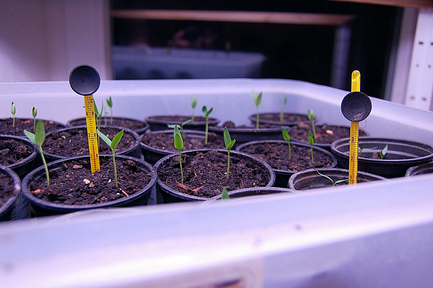 Wie bei den anderen Paprika das selbe Kunstlicht und das 25 Watt Heizkabel plus Bodentermometer das 2cm in einem Topf steckt.