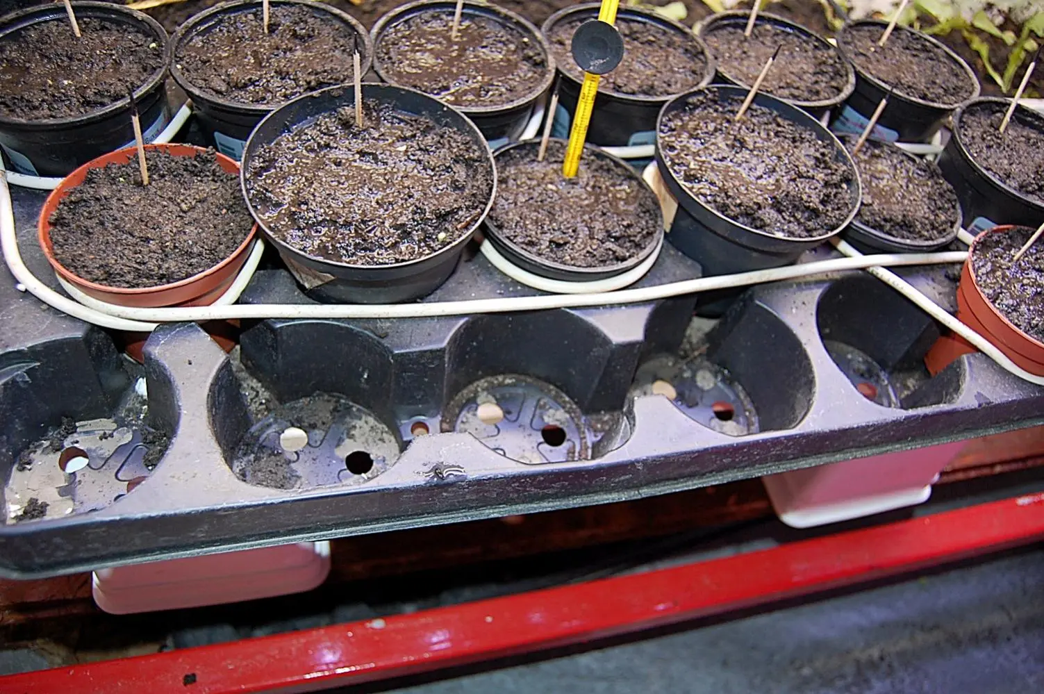 Hätte ich etwas mehr Zeit gehabt und unmittelbar nach dem Sähen die Heizkabel angebracht wären sie vieleicht auch 2-4 Tage früher aufgegangen.