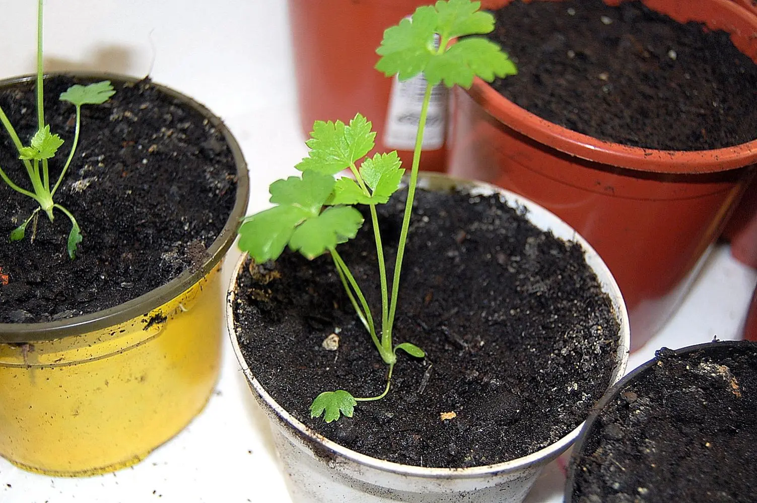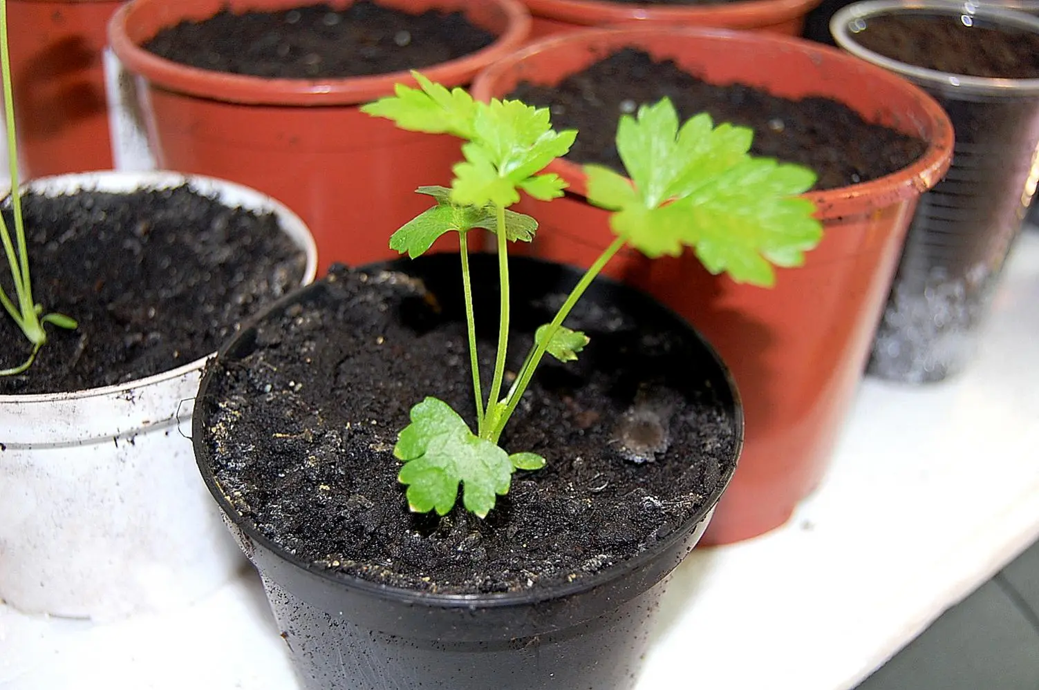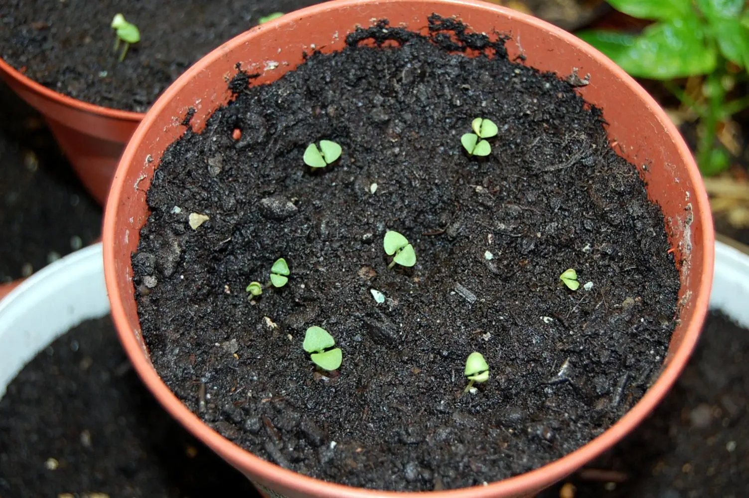 Die ersten Basilikumtöpfe