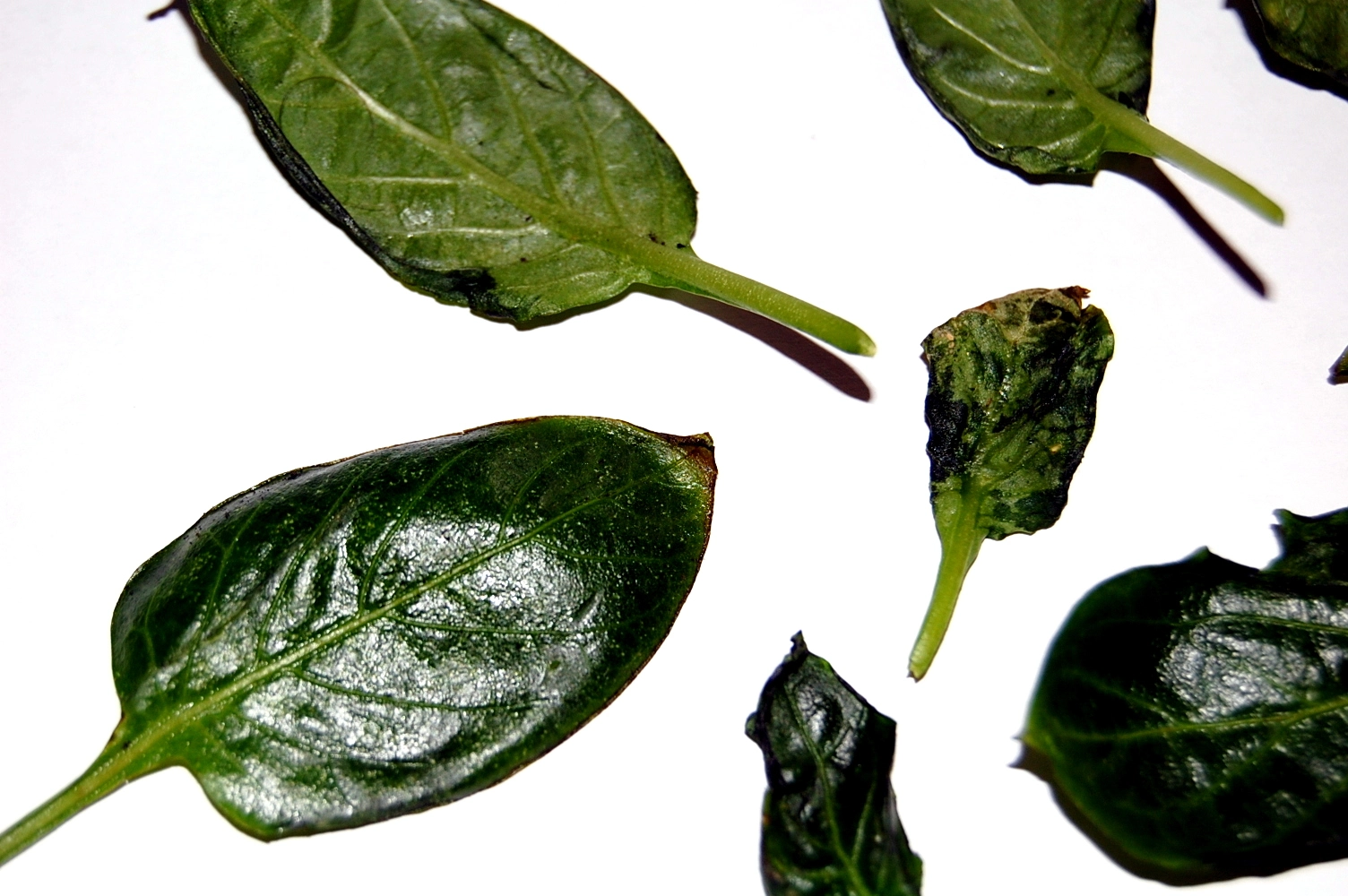 Nach Trauermücken und Spinnmilben habe ich volgendes Problem an Tomaten und Paprikas. Die Blätter fangen von der Spitze an Braun zu werden, das ganze verläuft dann über den Blattrand bis zum Stielansatz wo es dann auch schon von der Blattspitze her 1/3 in Blatt eindringt bis dann von allen Seiten das ganze Blatt befallen wird und "vertrocknet" mit dem Ganzen Blattstengel abfällt.