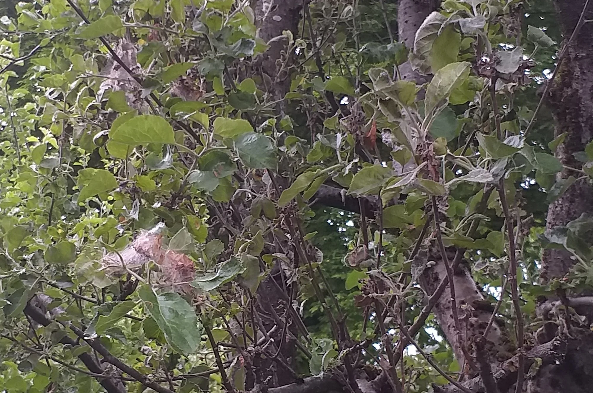 Vor zwei Jahren haben wir unsere Apfelbäume zurückgeschnitten, da diese offenbar krank (offenbar auch mit der Gespinstmotte) waren.