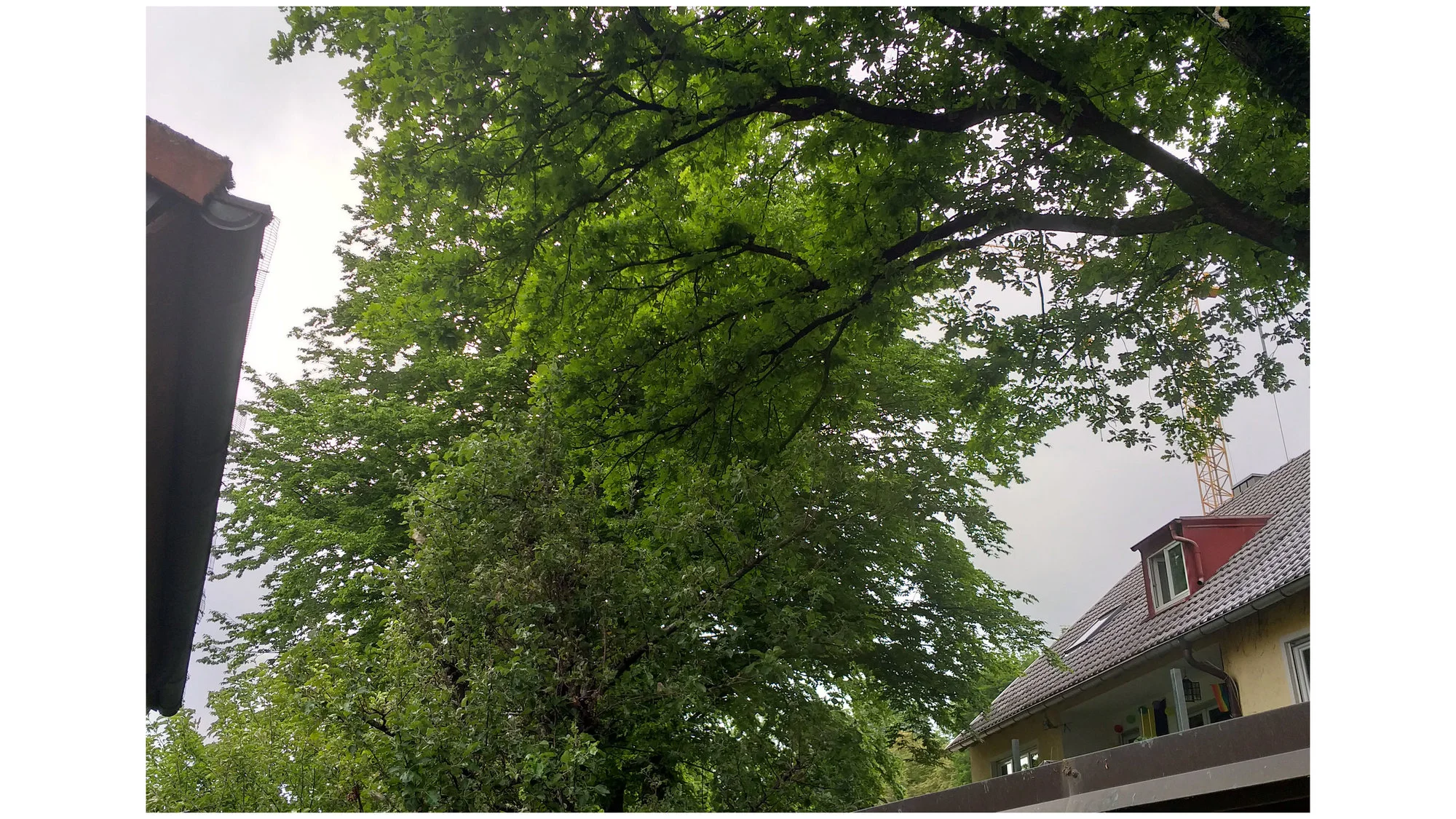 Der Nachbar hat eine große Eiche auf seinem Grundstück stehen, deren Ausläufer bis zur Hälfte in unser Grundstück reichen und sich über den Apfelbäumen ausdehnen.