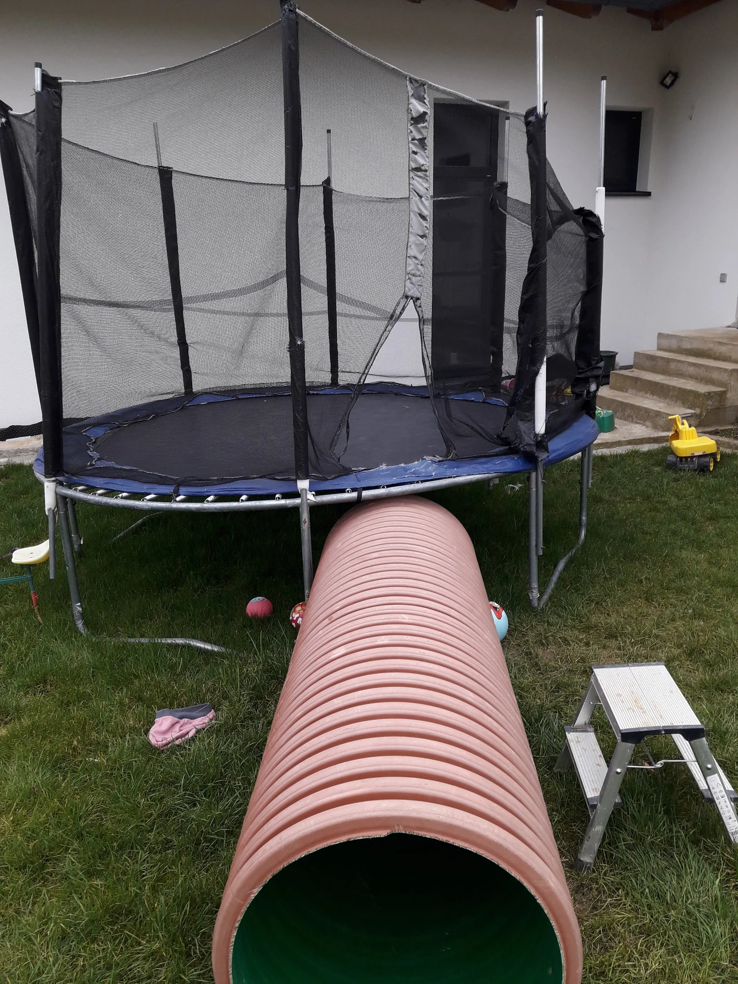 Und noch eine Warnung: Vorsicht, es kommen noch Trampolin und Pool auf Euch zu. Vielleicht gibt es schon so feste Freundschaften, dass Ihr Euch mit anderen Eltern absprechen könnt, damit die Teile nicht in jedem Garten stehen. Einzig der Platz rechts zwischen Sandkasten und Terrassensichtschutz böte möglicherweise genug Platz für eines dieser Monster.