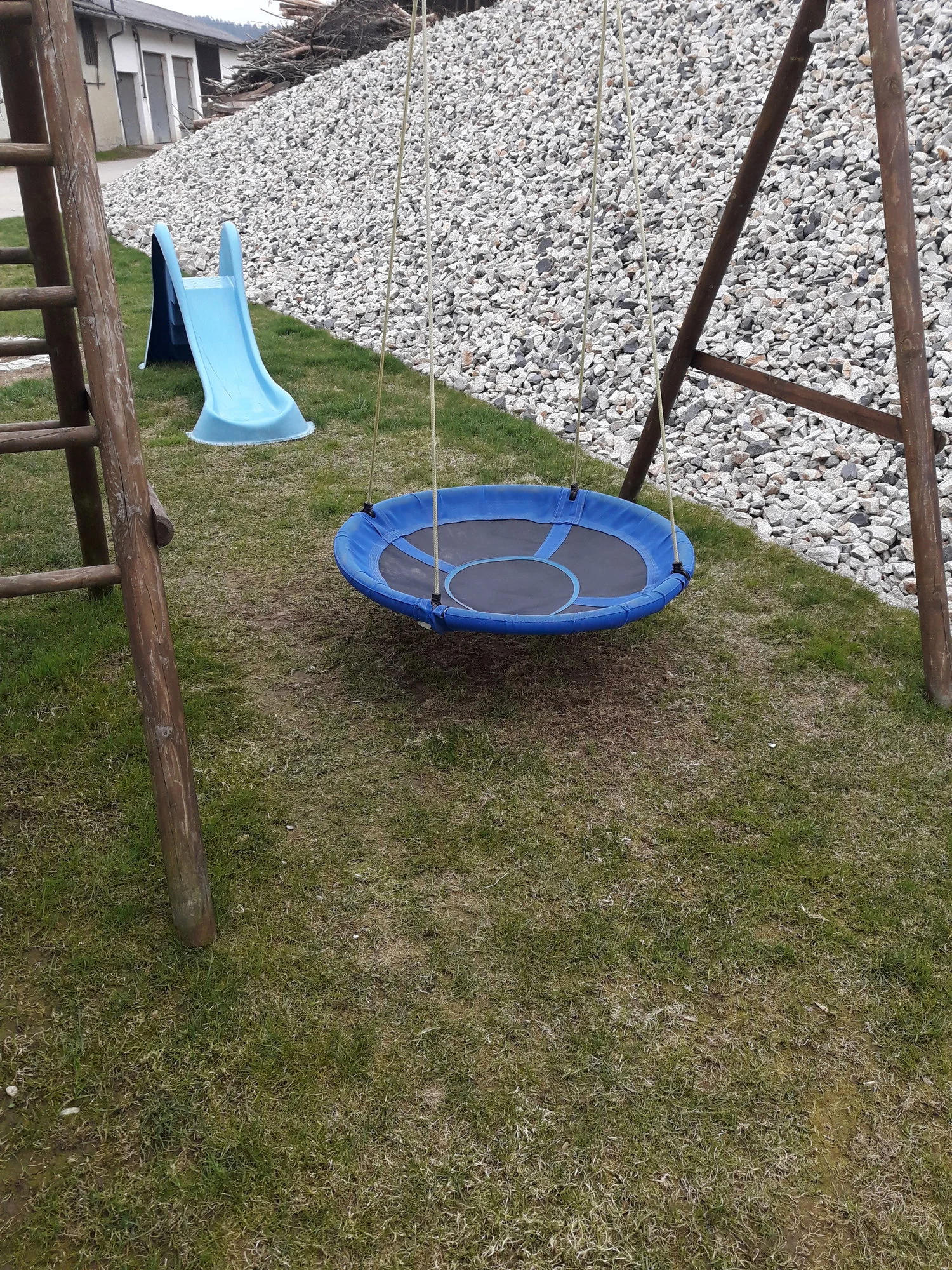 und Schuppen zum Beklettern.) In diesem Jahr wird das EG des Turms zum Hühnerstall. Später werden wir dann die Rutsche und Leiter abbauen und das OG abschaffen. (So der Plan.