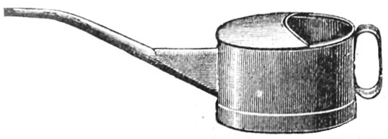 Gießkannen mit Längsbügel, nicht am Rumpf befestigt sondern an der Einfüllöffnung endend