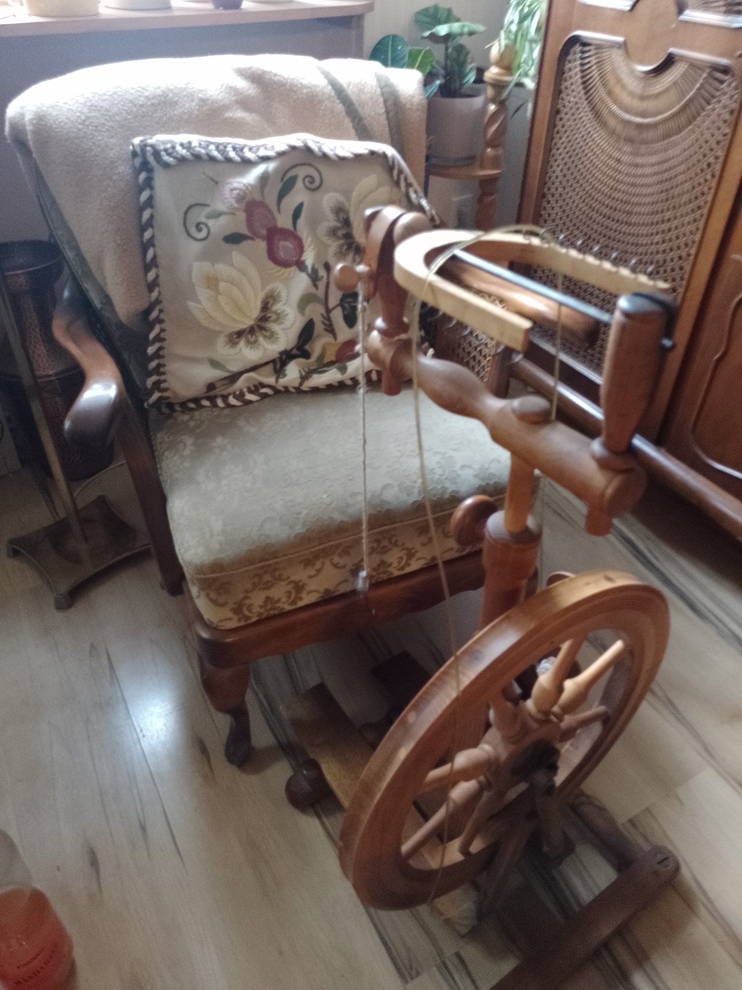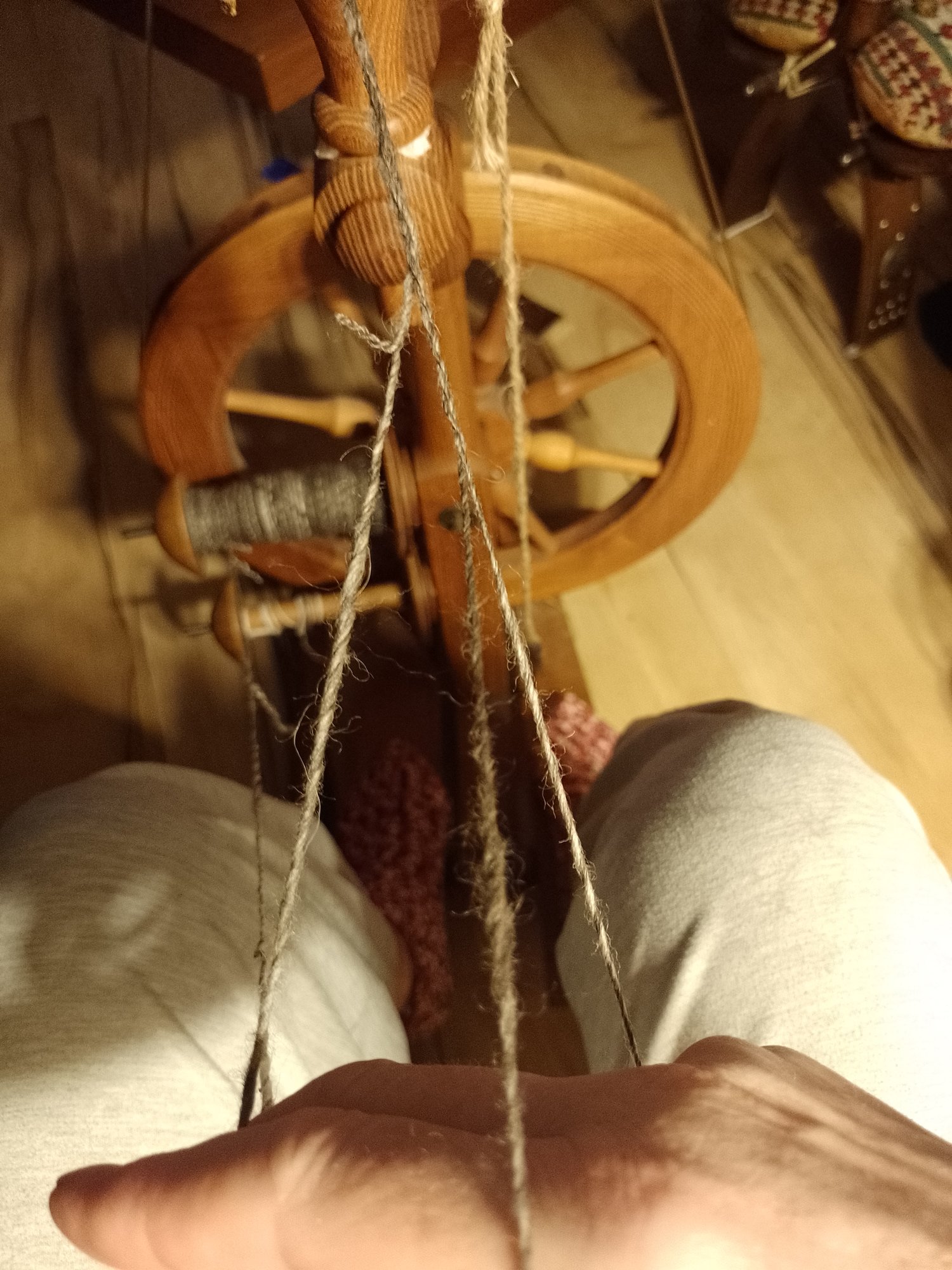 Gemütlich im Wohnzimmer stricken oder auch Wolle spinnen