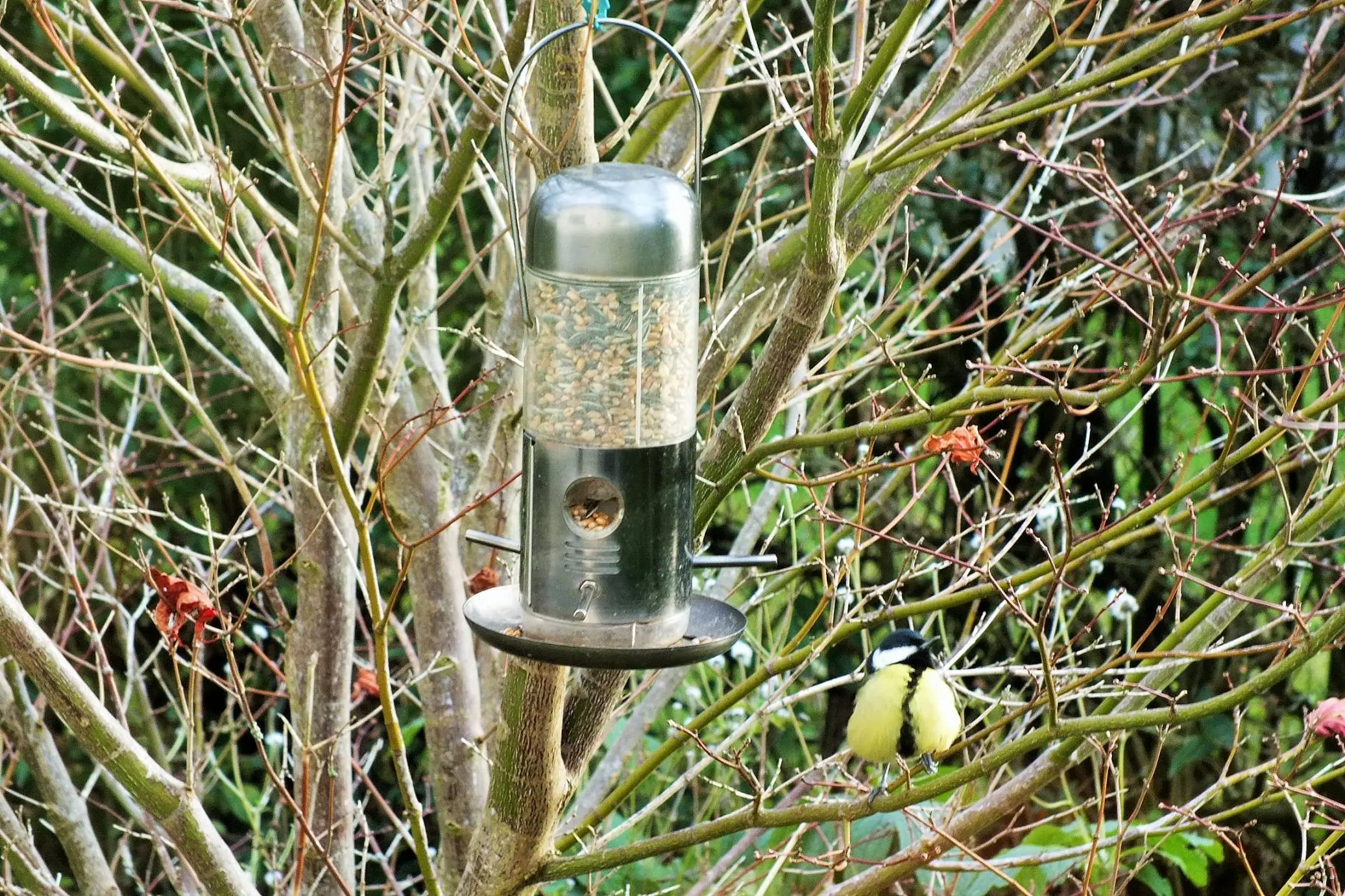 Futtersäulen habe ich auch schon aufgehängt, aber in die Sträuchr