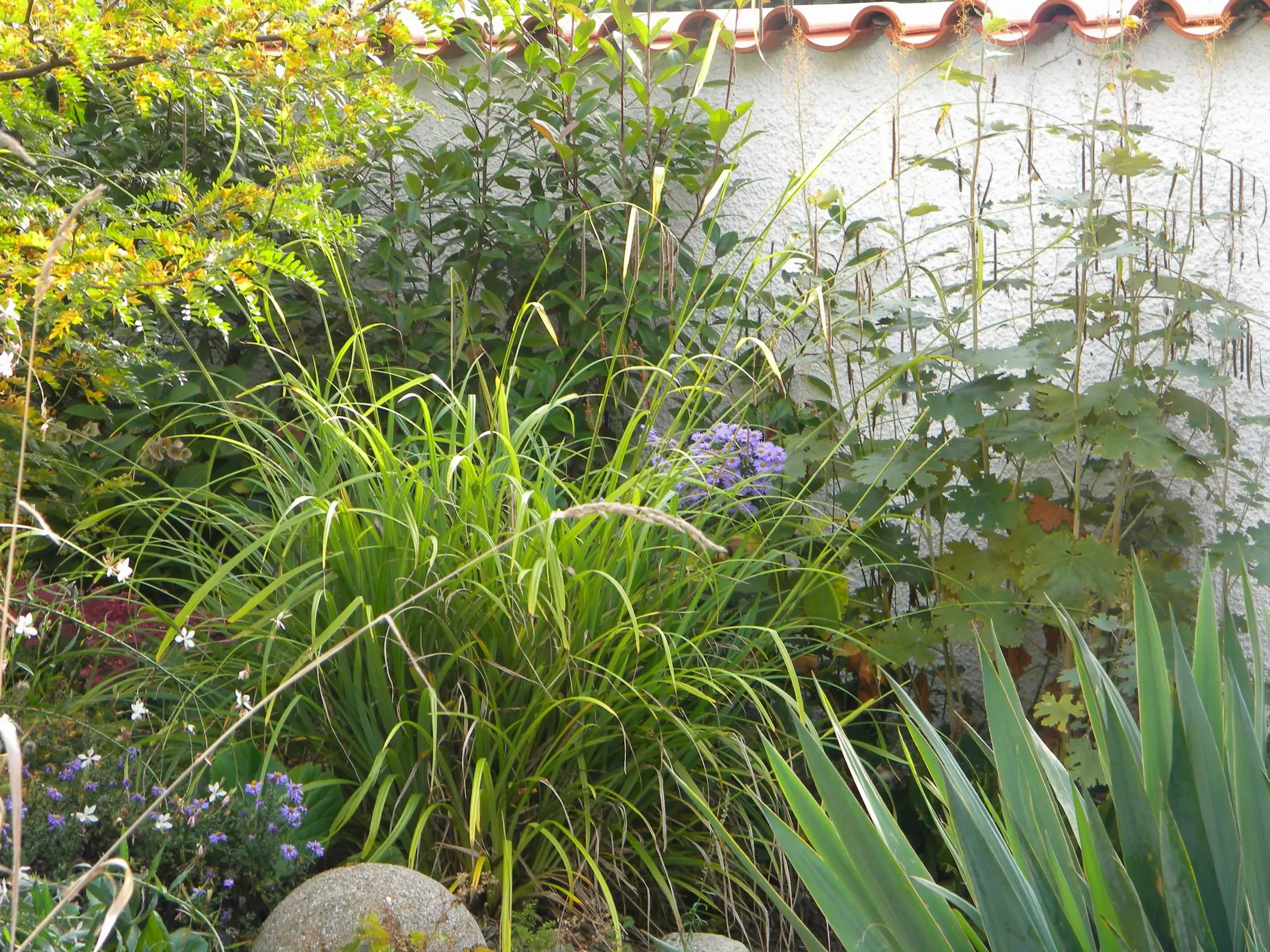 Nur der Wind und Regen haben mir das Gras ganz schön zerzaust. Nächstes Jahr muss ich eine Lösung für ein festeres Anbinden suchen.