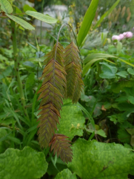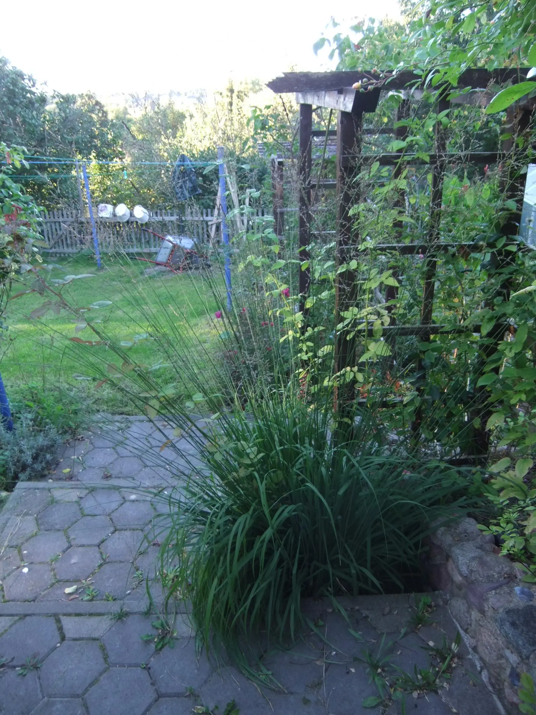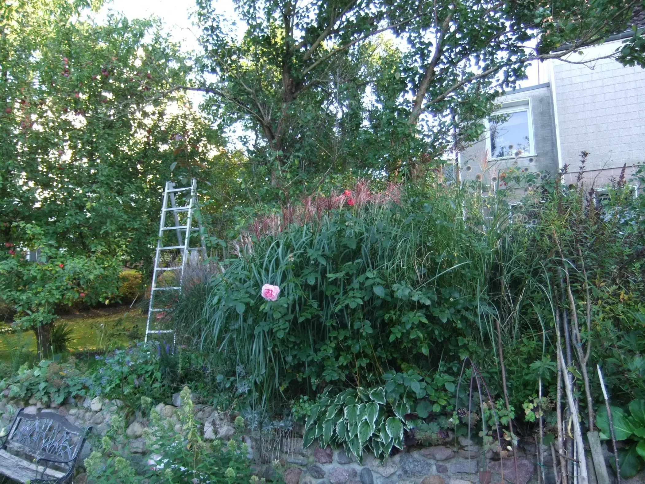 In diesem Gartenteil das höchte Gras: Riesensegge (carex pendula, bereits der Samenstände beraubt:grins:)